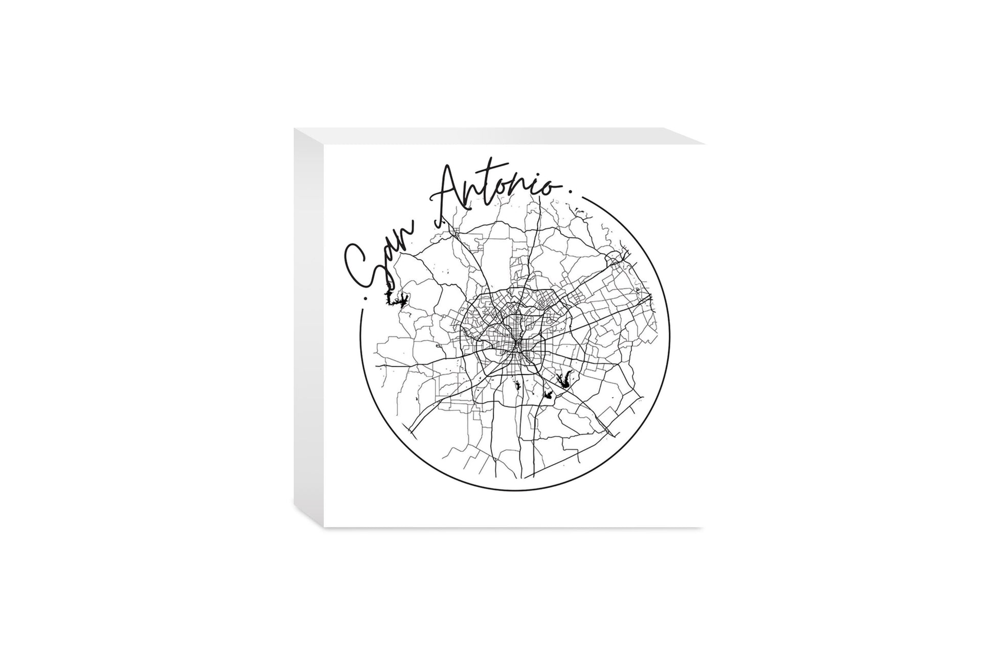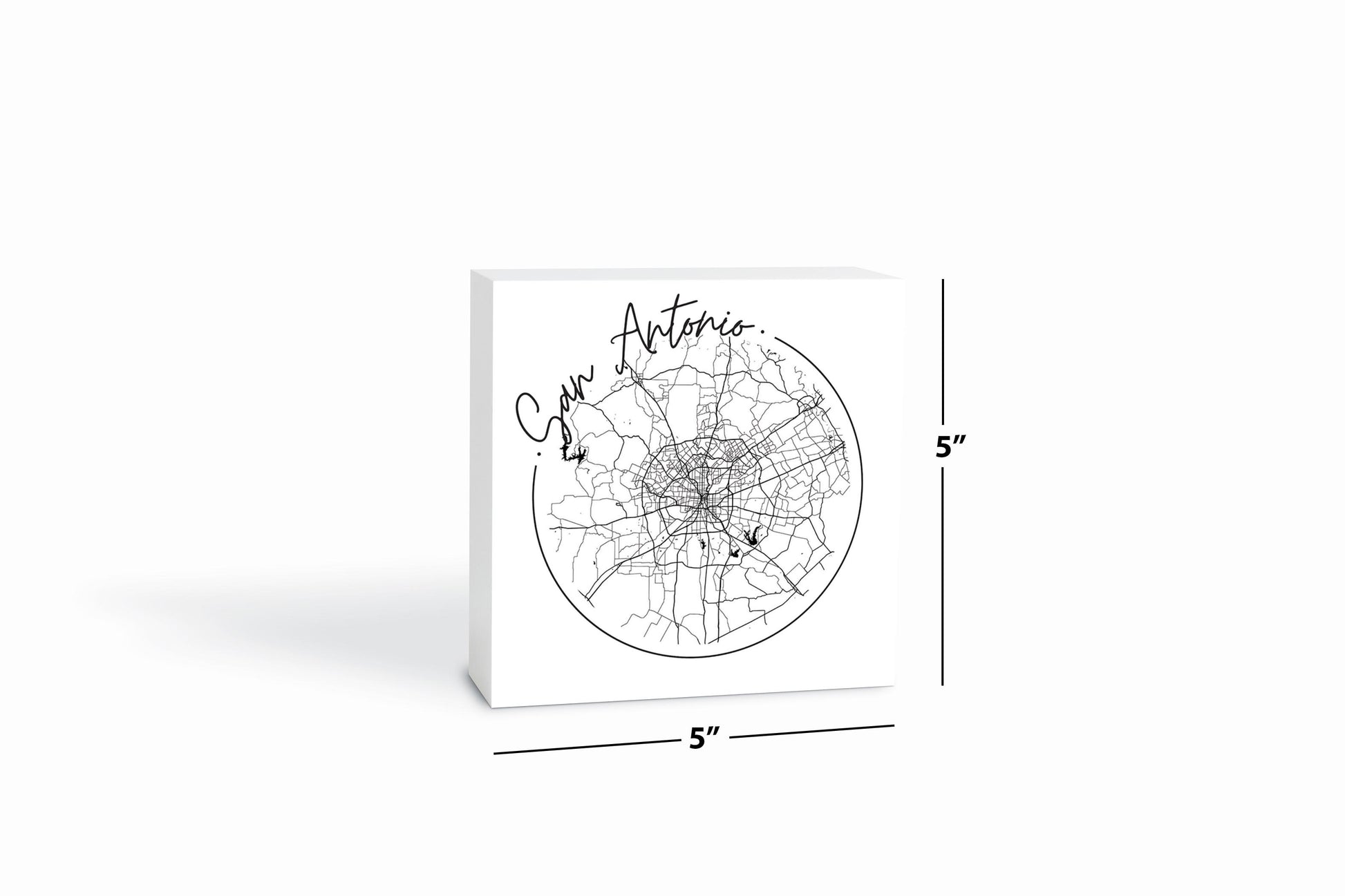 Modern San Antonio Round Map | Wood Block | Eaches | Min 4