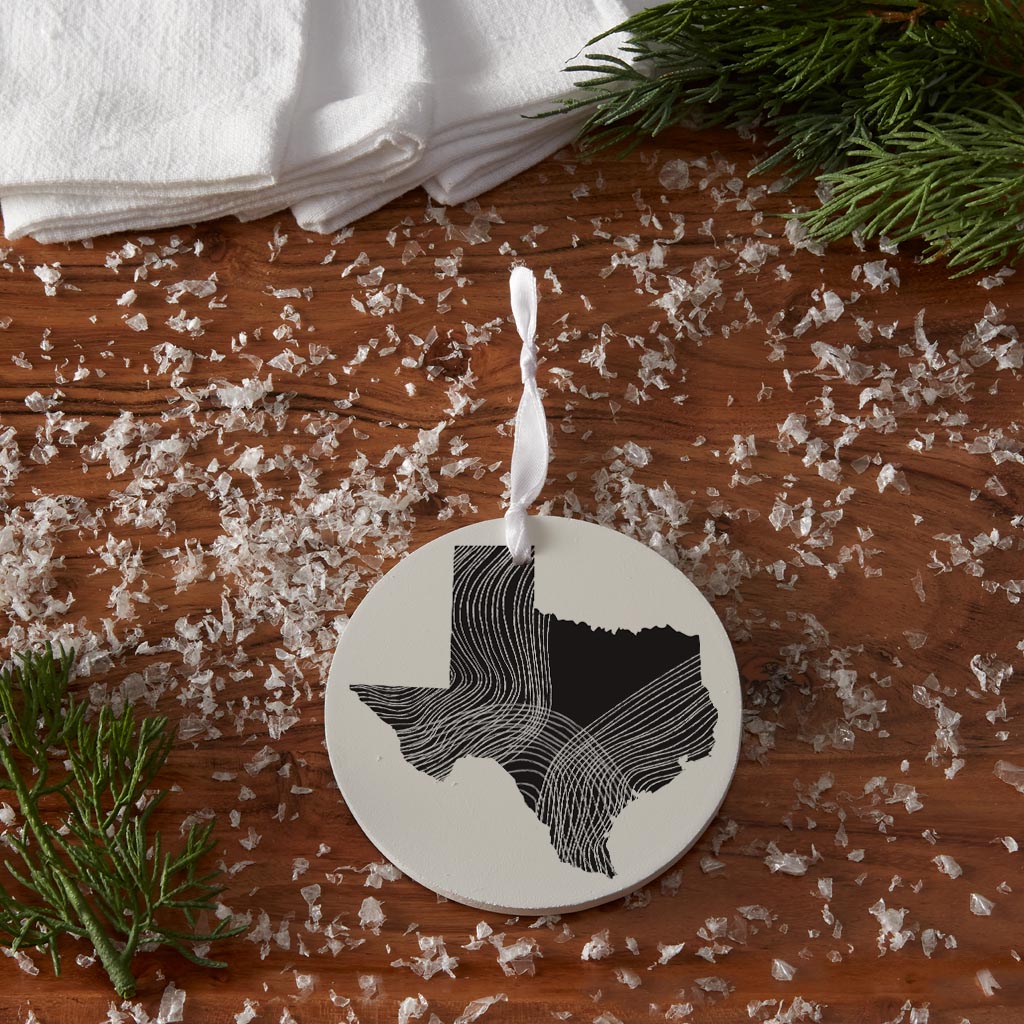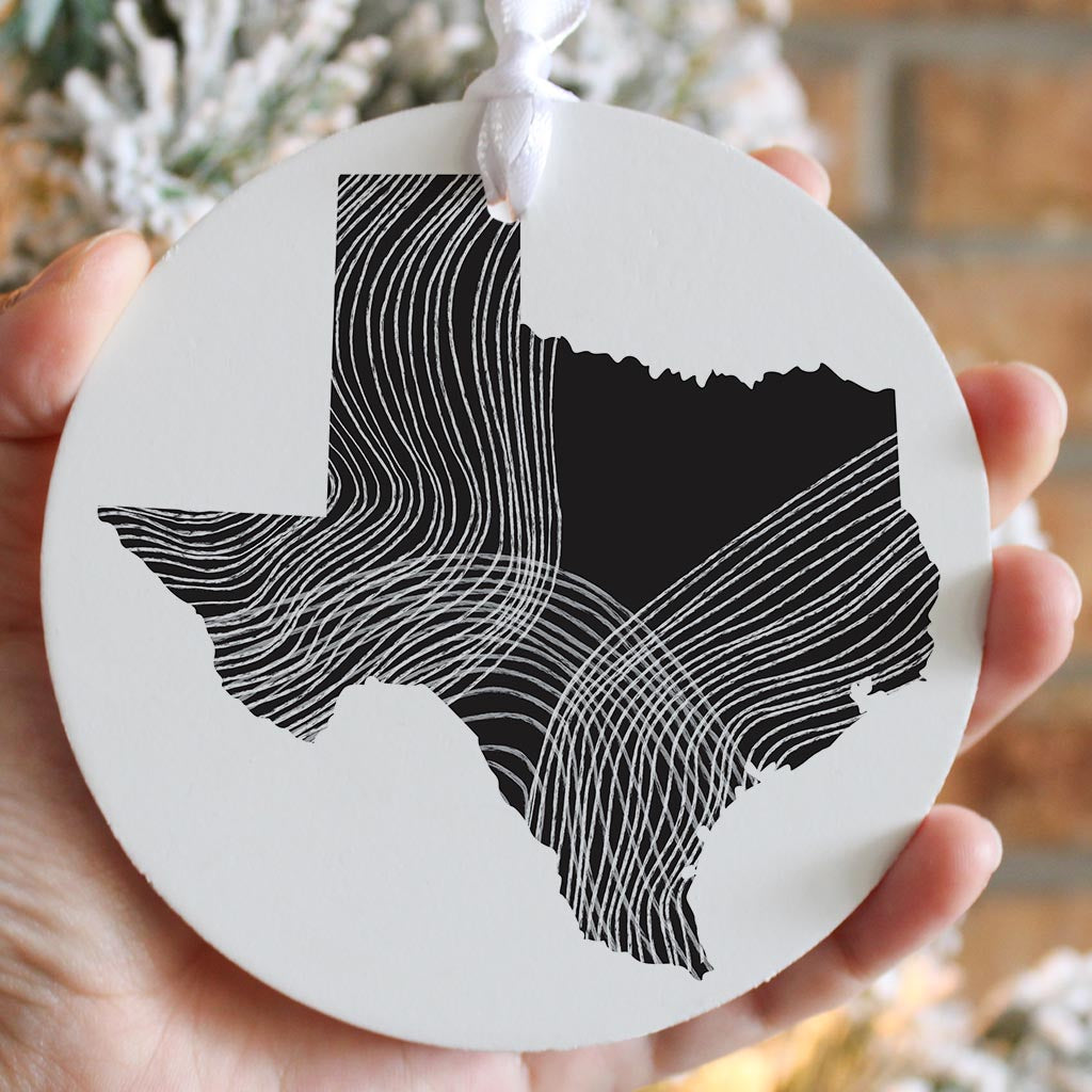 Modern Texas State Shape With Fluid Lines| Wood Ornament | Eaches | Min 6