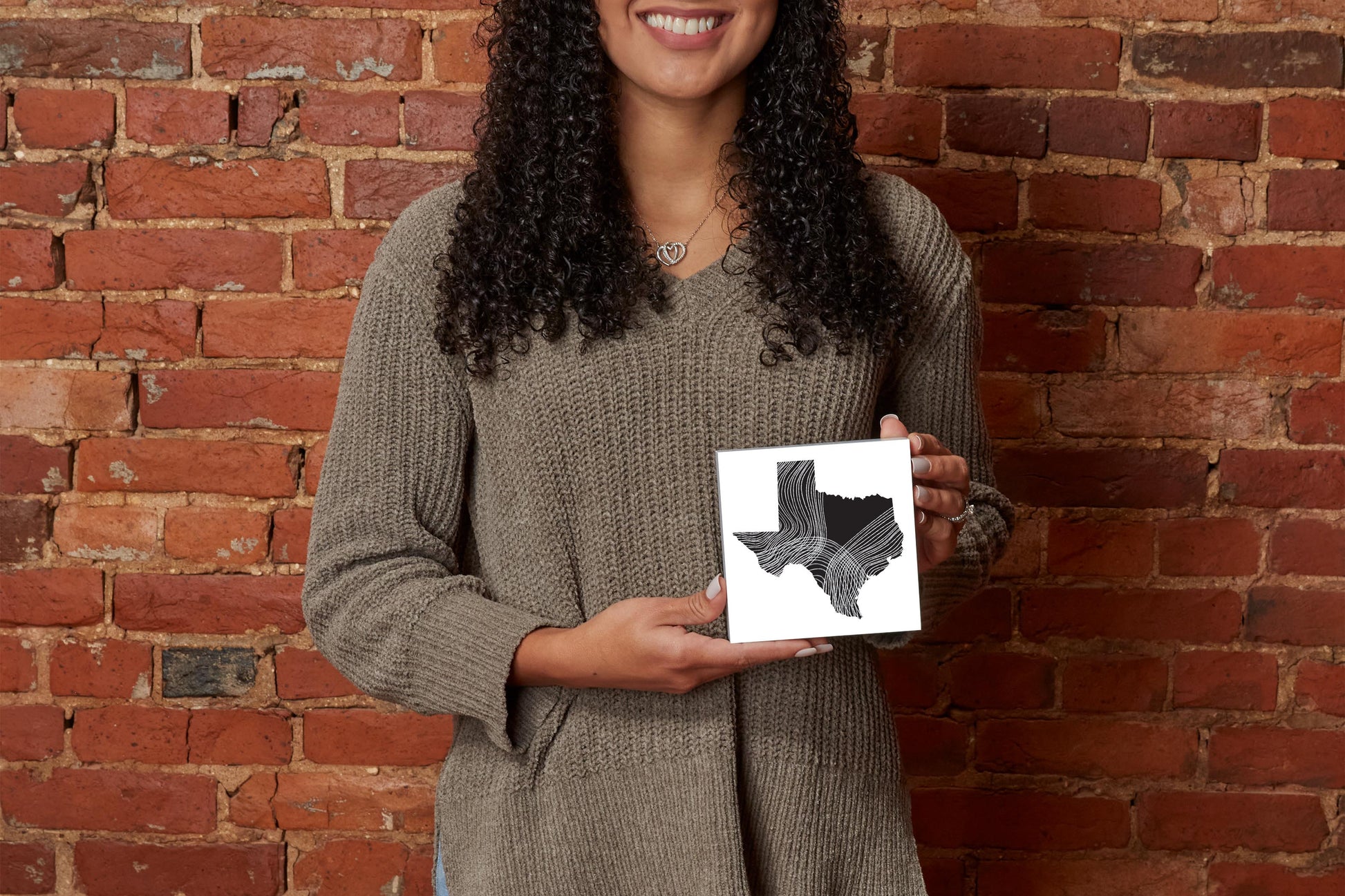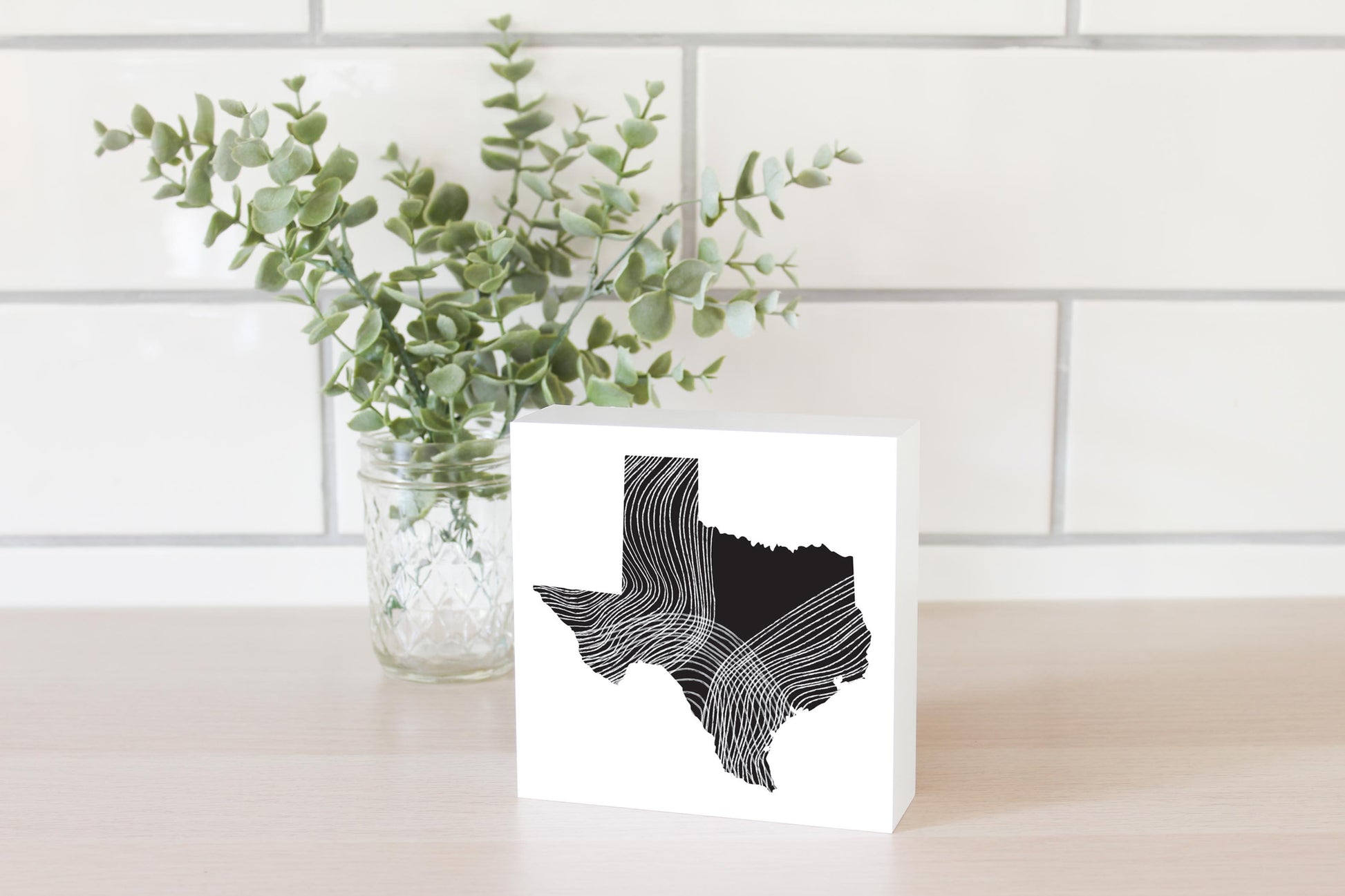 Modern Texas State Shape With Fluid Lines | Wood Block | Eaches | Min 4