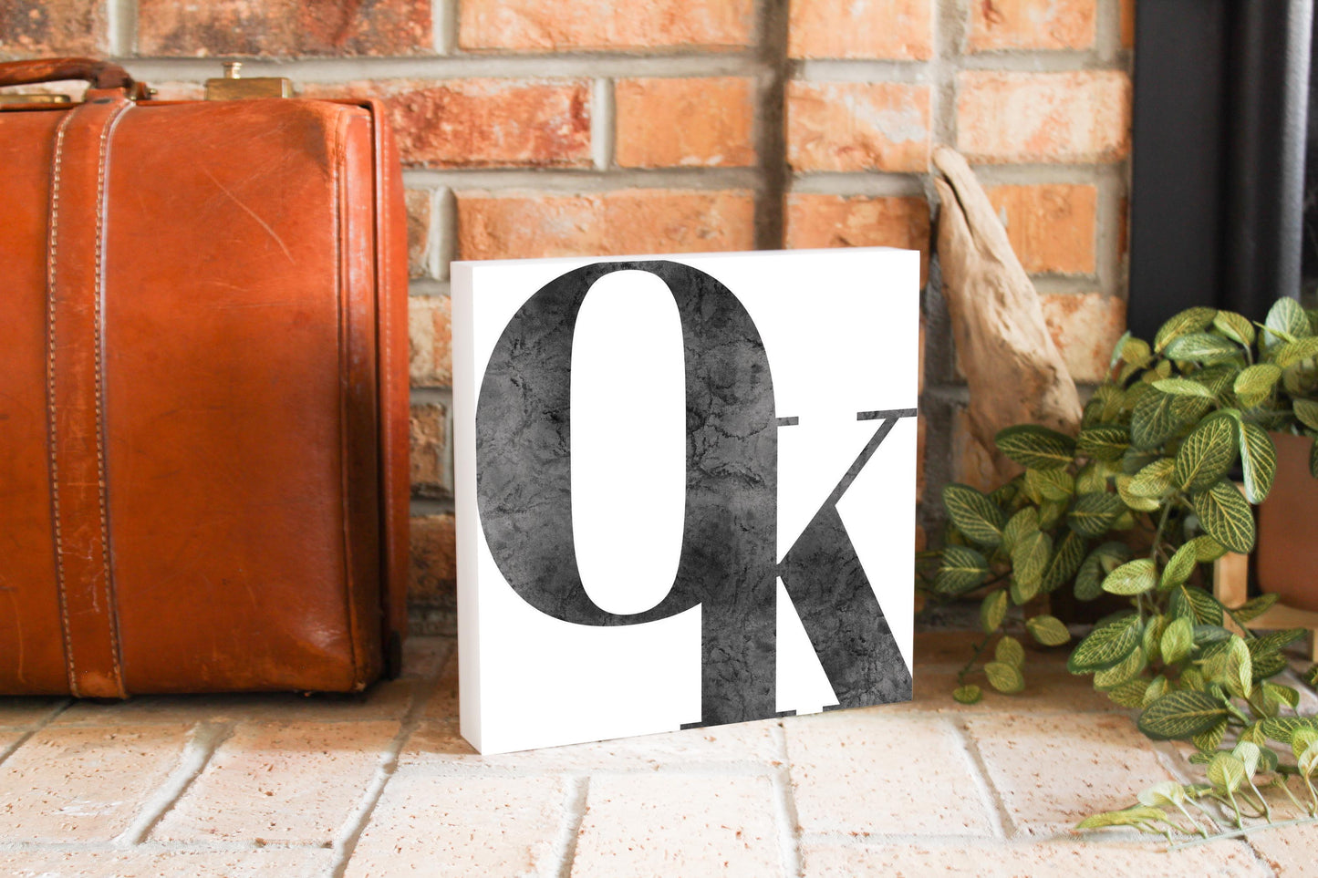 Modern White Oklahoma Initials | Wood Block | Eaches | Min 2