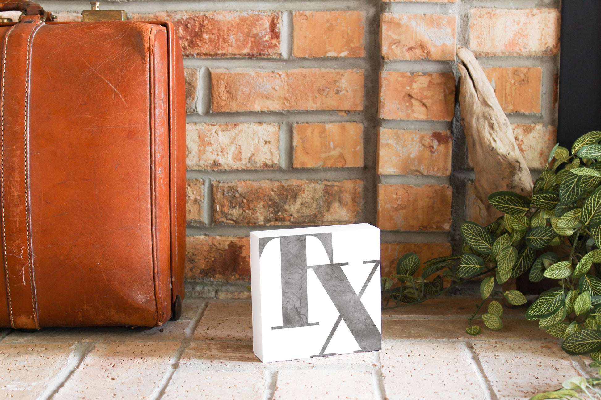 Modern White Texas Initials | Wood Block | Eaches | Min 4