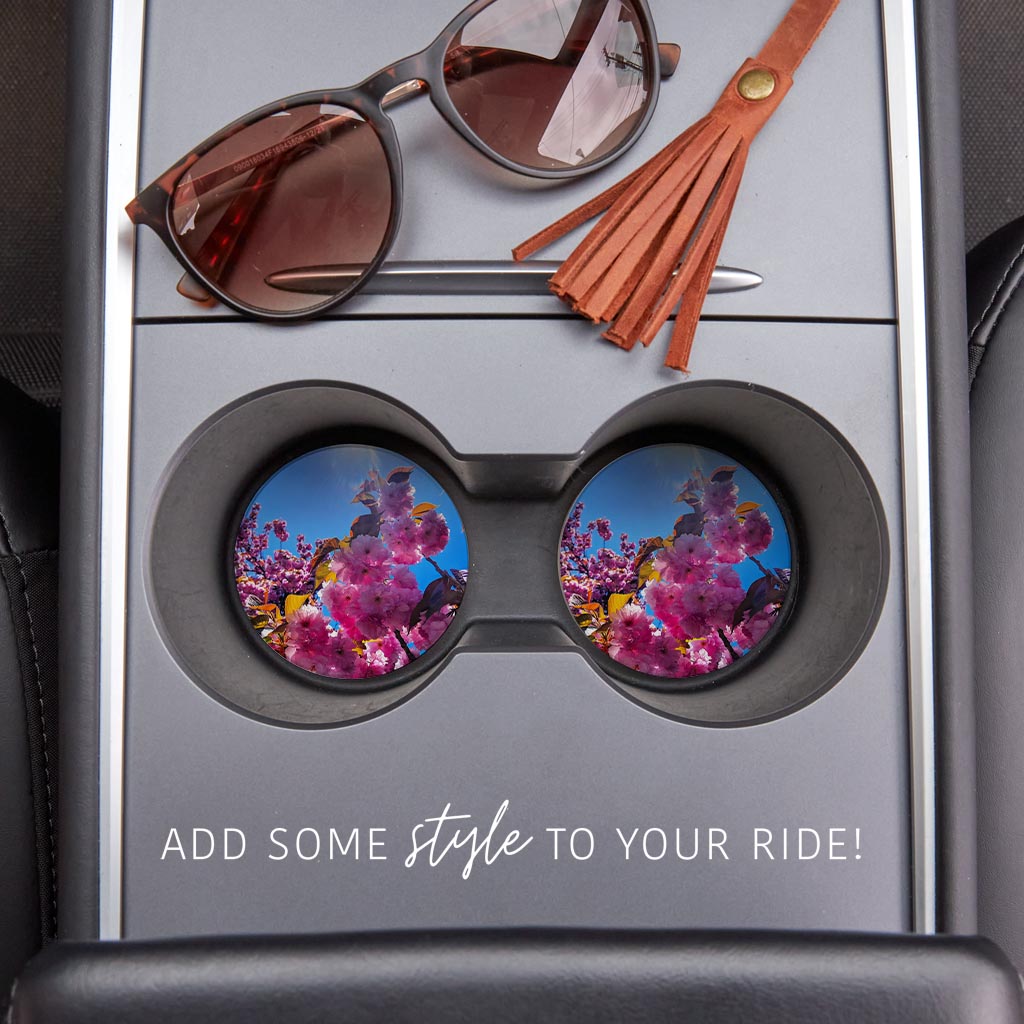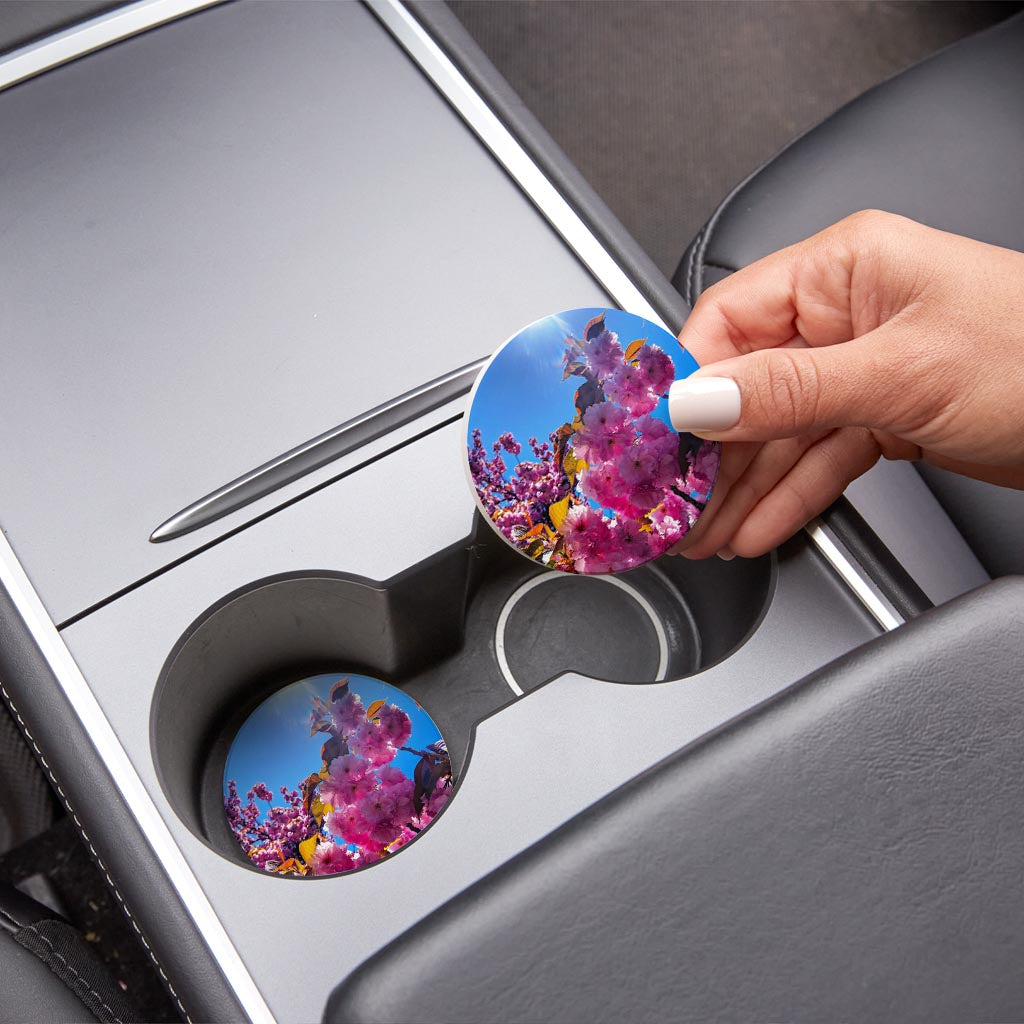 Monokian Cherry Blossoms | Absorbent Car Coasters | Set of 2 | Min 4