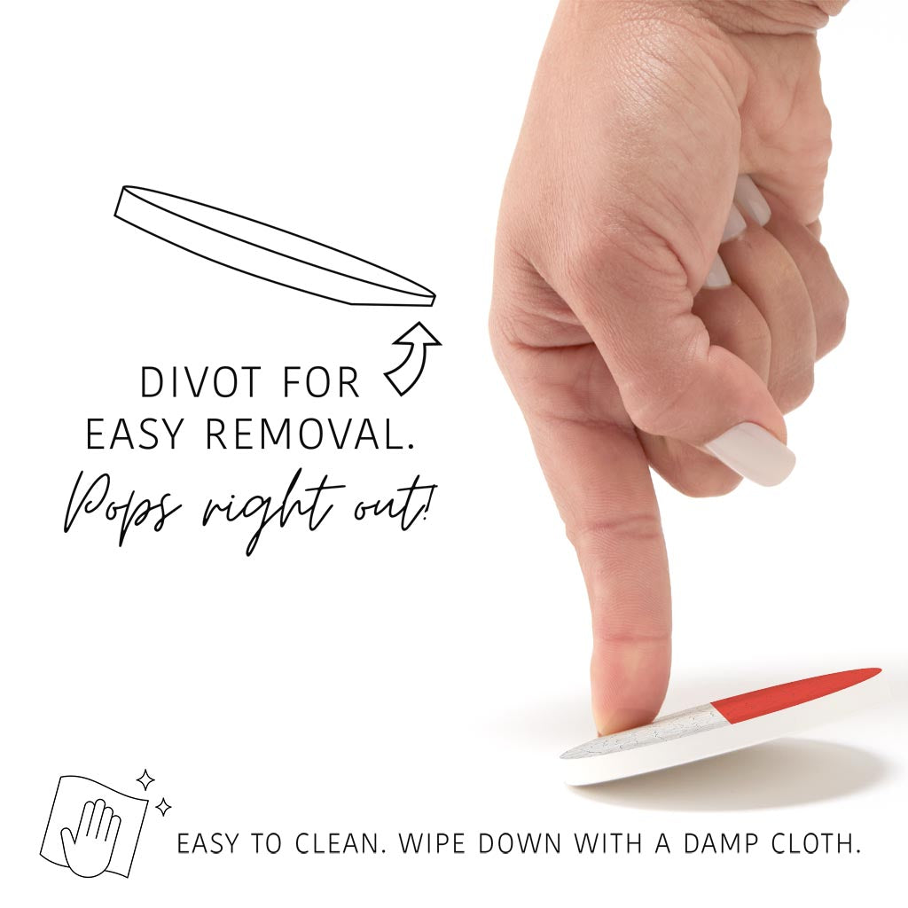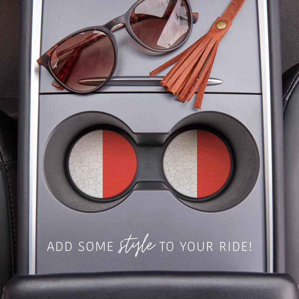 Car coasters are that little accessory that you didn’t know you needed but now consider an essential. Your cupholders are protected and kept clean by absorbing drips from your morning coffee to sticky juice boxes. The strategic divot edge allows you to easily pop it out and wipe clean. No more grime stuck in the cupholder abyss. While car coasters are wonderfully utilitarian, they also inject a little personality and design into the space you spend so much time in. Order a few to mix and match to your mood, season, or newest trends. We love when function and design coincide!