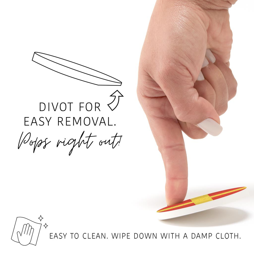 Car coasters are that little accessory that you didn’t know you needed but now consider an essential. Your cupholders are protected and kept clean by absorbing drips from your morning coffee to sticky juice boxes. The strategic divot edge allows you to easily pop it out and wipe clean. No more grime stuck in the cupholder abyss. While car coasters are wonderfully utilitarian, they also inject a little personality and design into the space you spend so much time in. Order a few to mix and match to your mood, season, or newest trends. We love when function and design coincide!