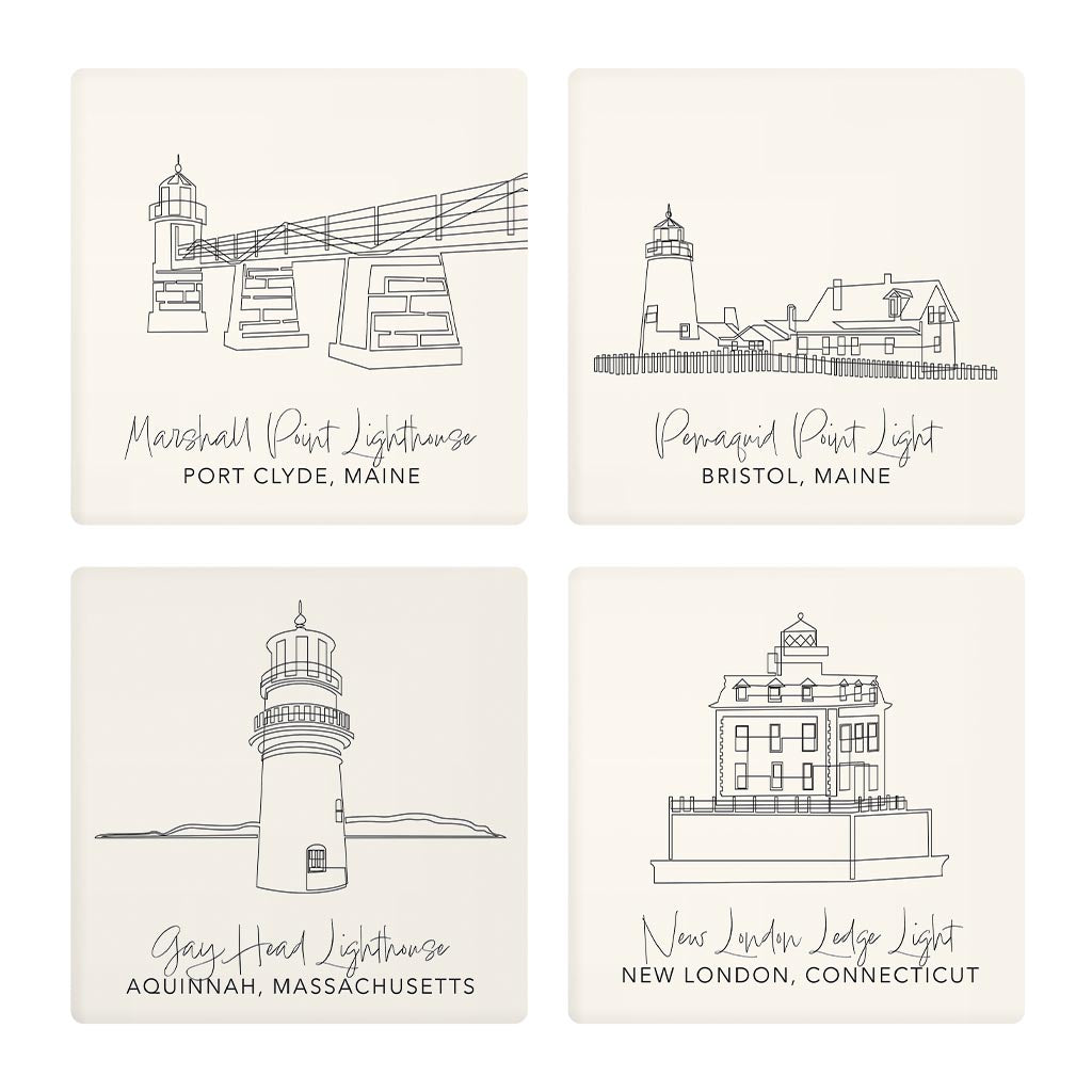 New England Lighthouses Cream Colored | Absorbent Coasters | Set of 4 | Min 2