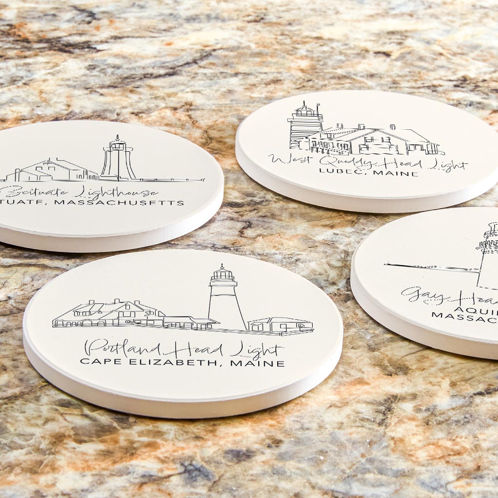 New England Lighthouses Cream Colored | Absorbent Coasters | Set of 4 | Min 2