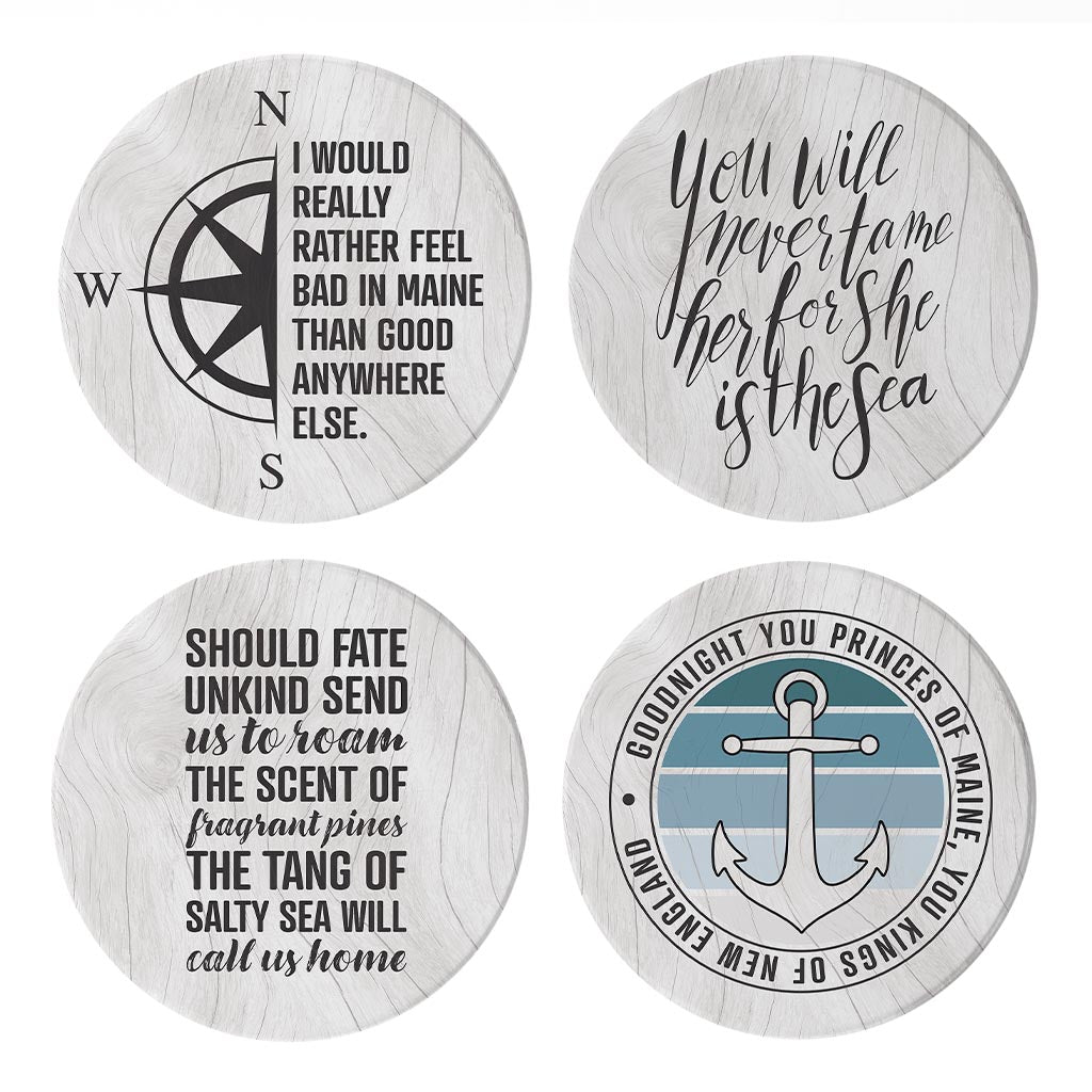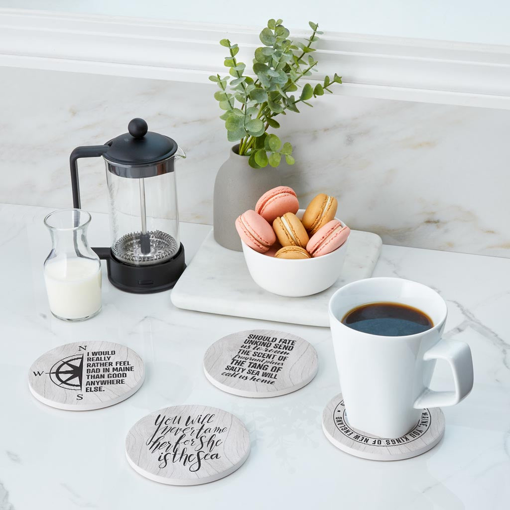 New England Sayings With Wood Grain| Absorbent Coasters | Set of 4 | Min 2