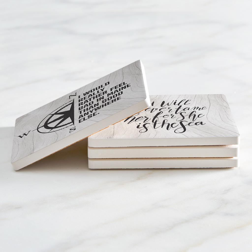 New England Sayings With Wood Grain | Absorbent Coasters | Set of 4 | Min 2