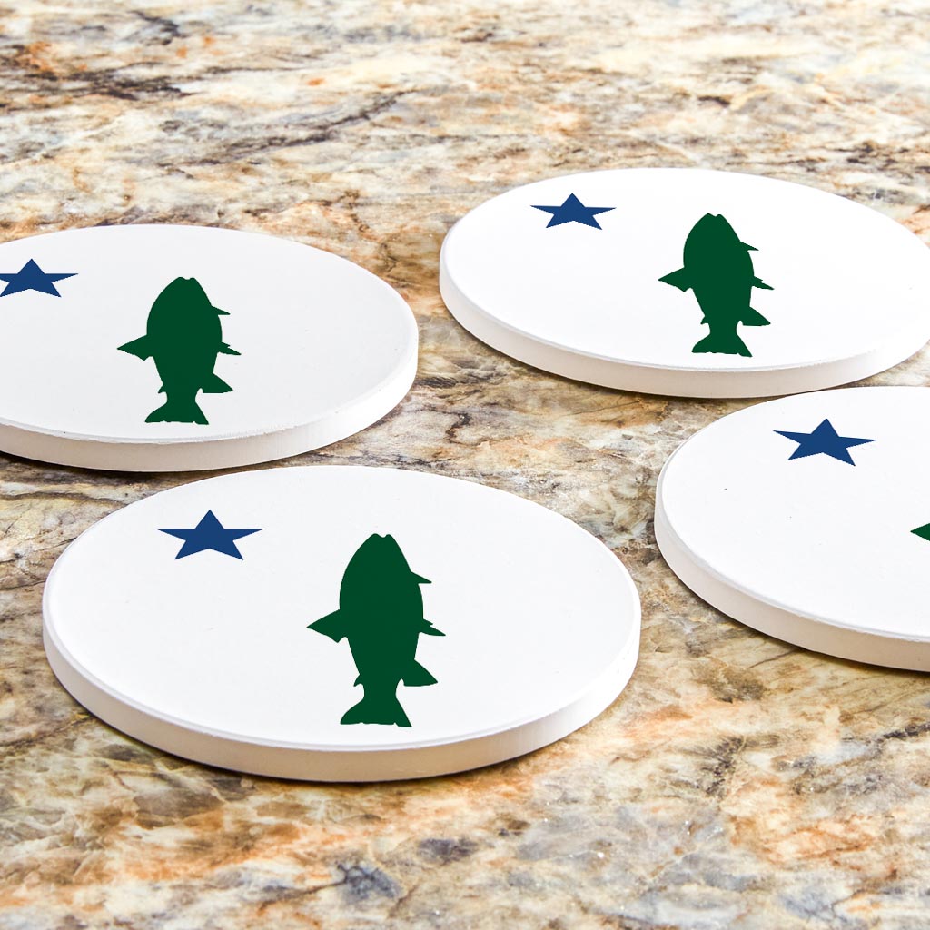 New England Star And Trout | Absorbent Coasters | Set of 4 | Min 2