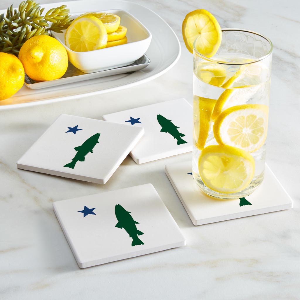 New England Star And Trout | Absorbent Coasters | Set of 4 | Min 2