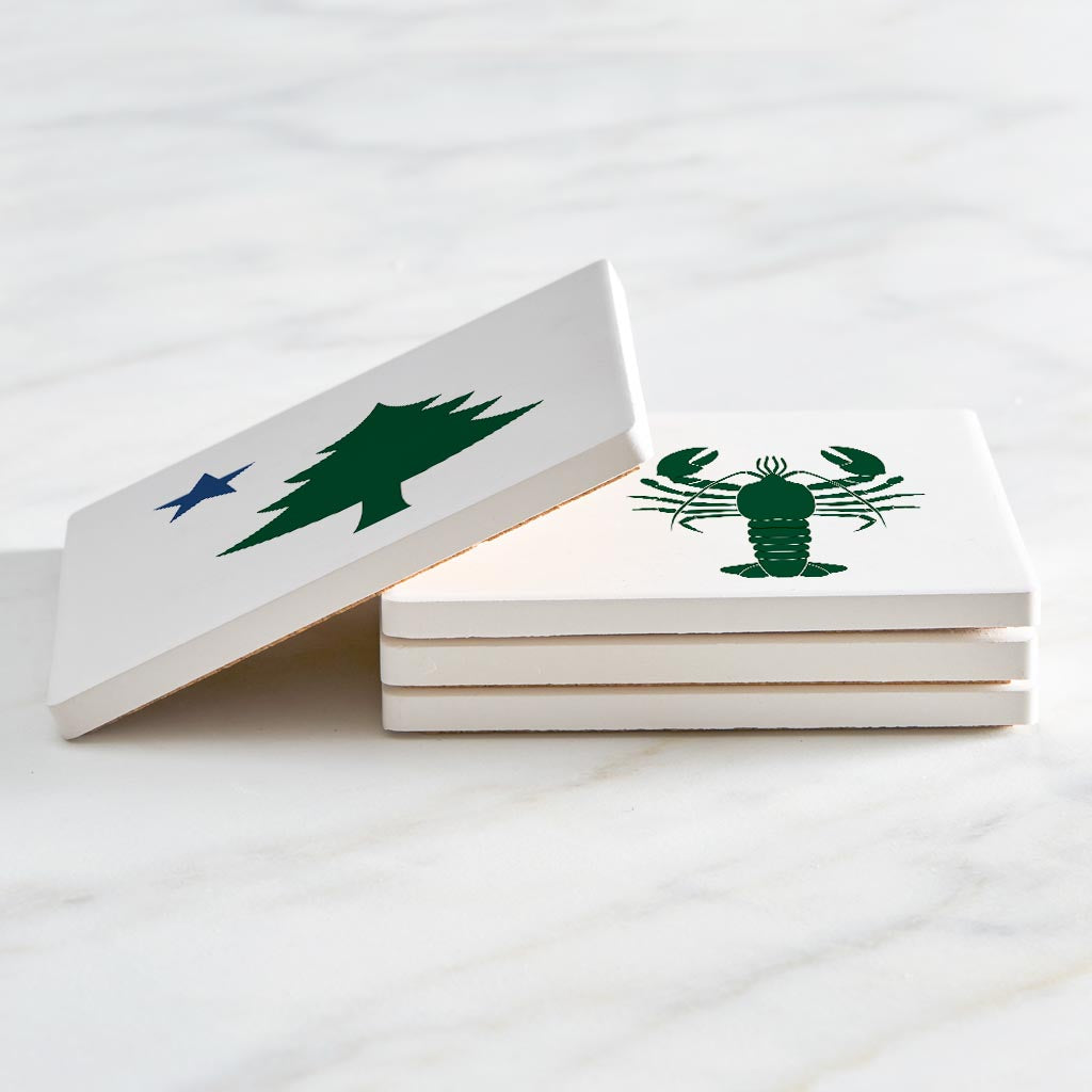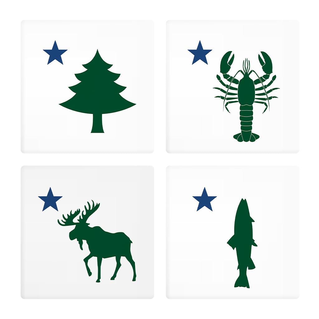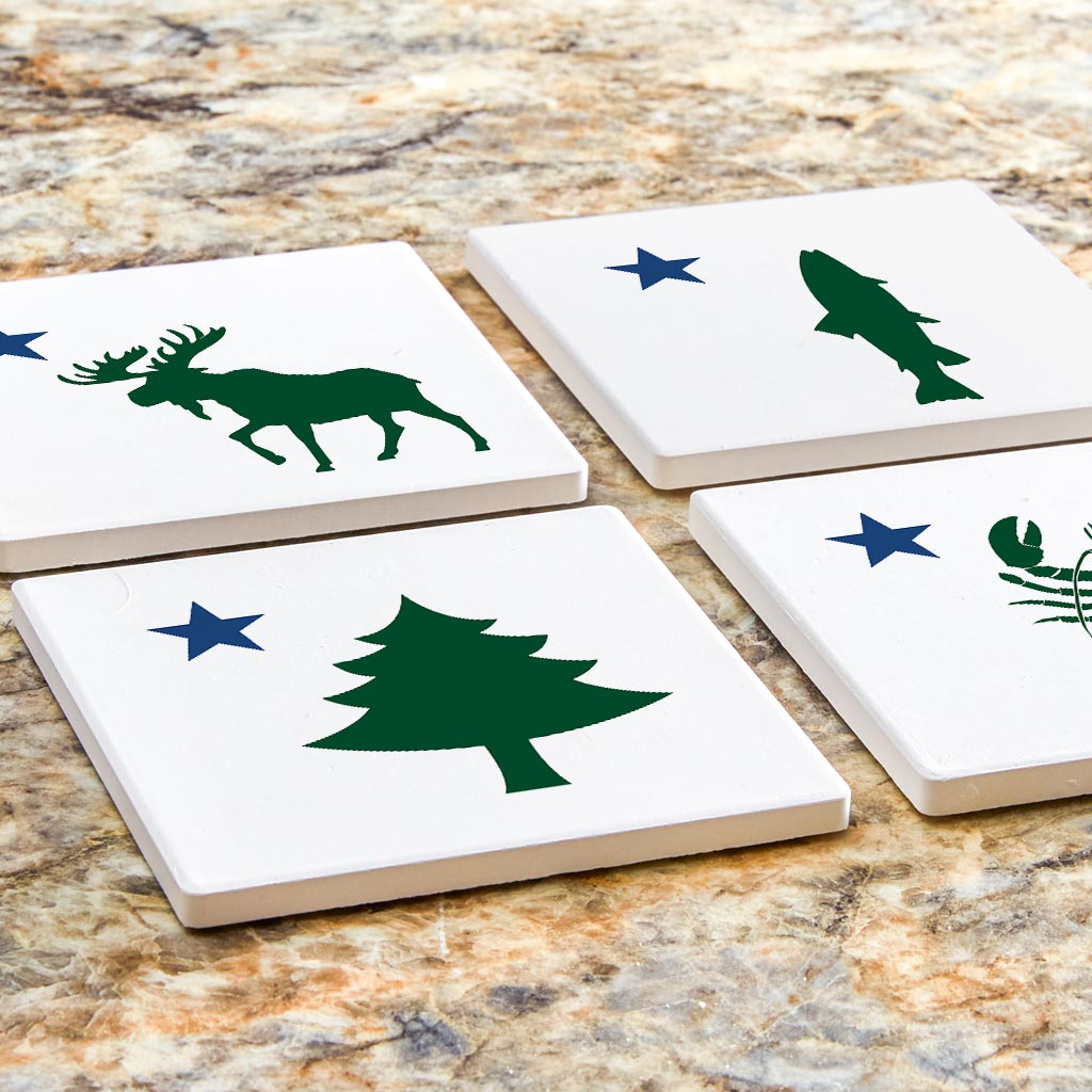 New England Star With Icons | Absorbent Coasters | Set of 4 | Min 2