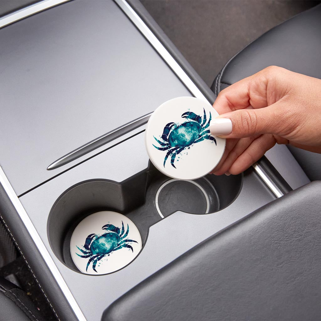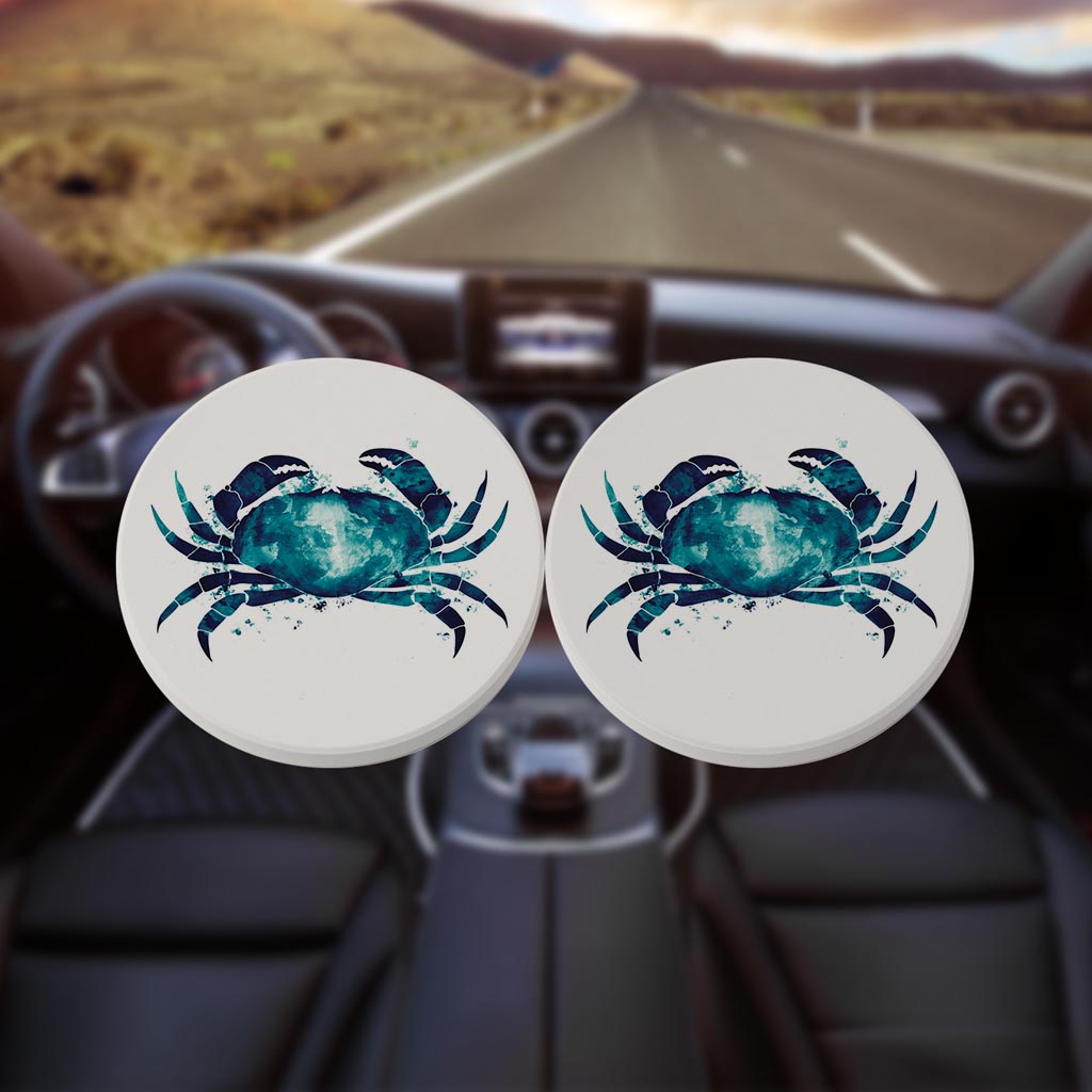 New England Water Color Crab| Absorbent Car Coasters | Set of 2 | Min 4