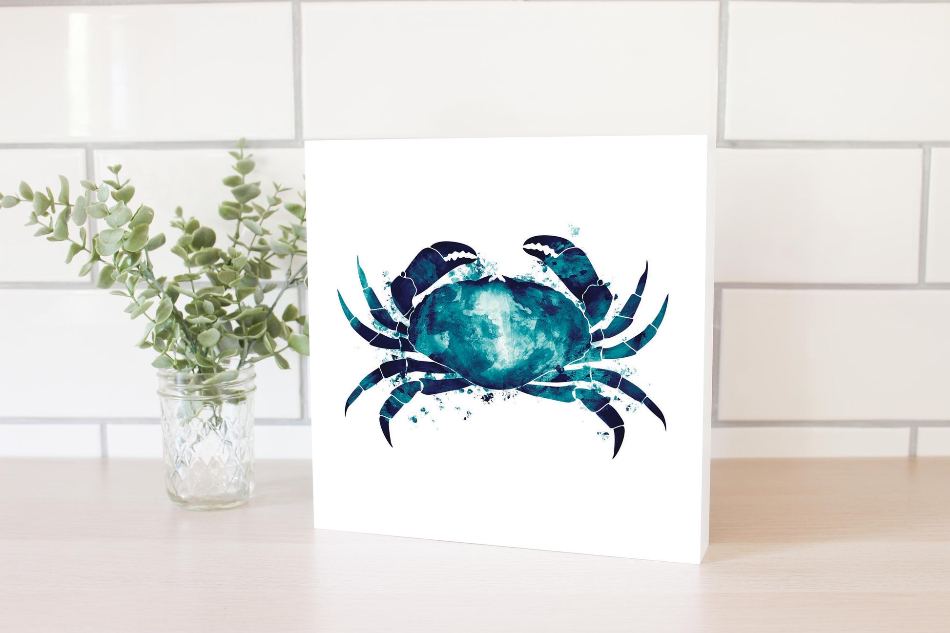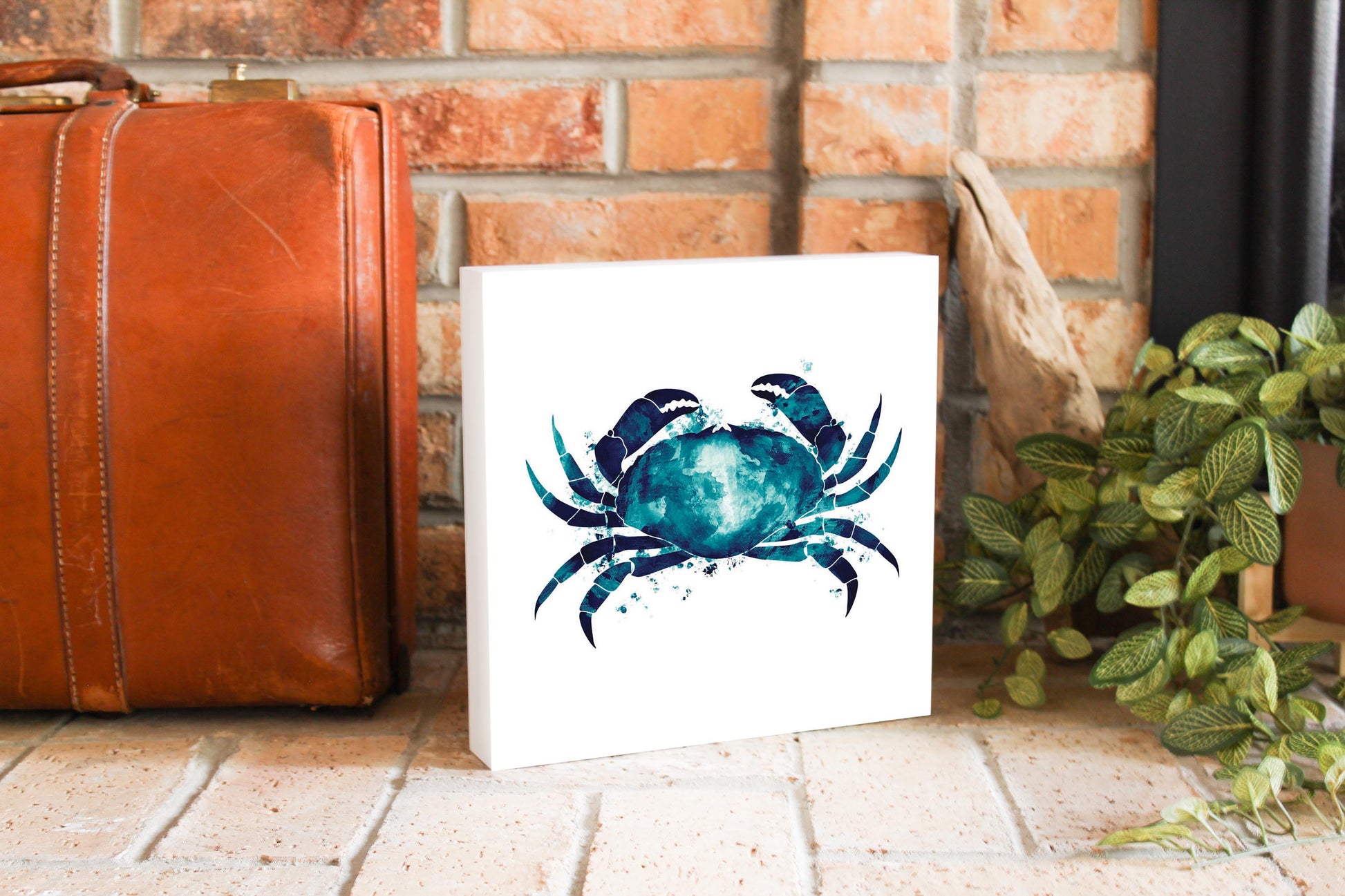 New England Water Color Crab | Wood Block | Eaches | Min 2