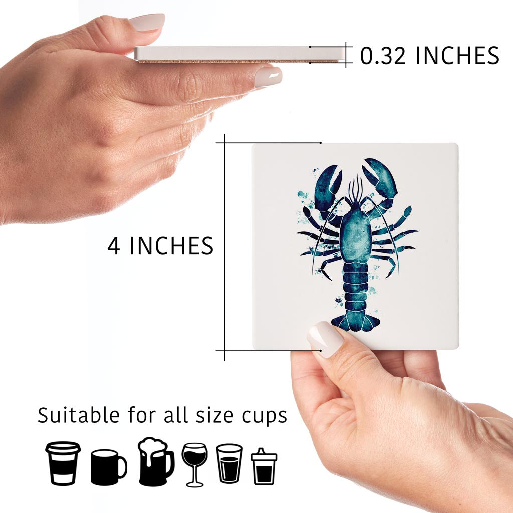 New England Water Color Lobster | Absorbent Coasters | Set of 4 | Min 2