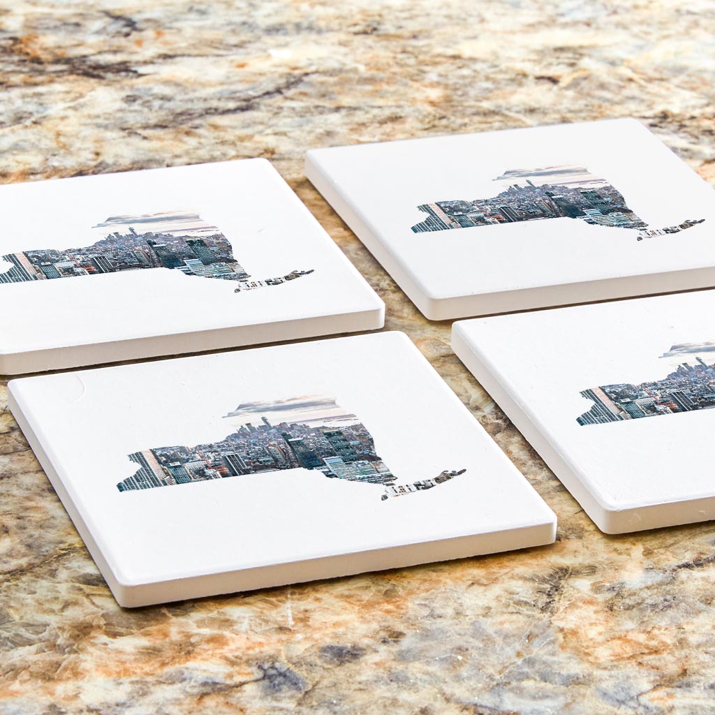 New York State Shape Picture | Absorbent Coasters | Set of 4 | Min 2