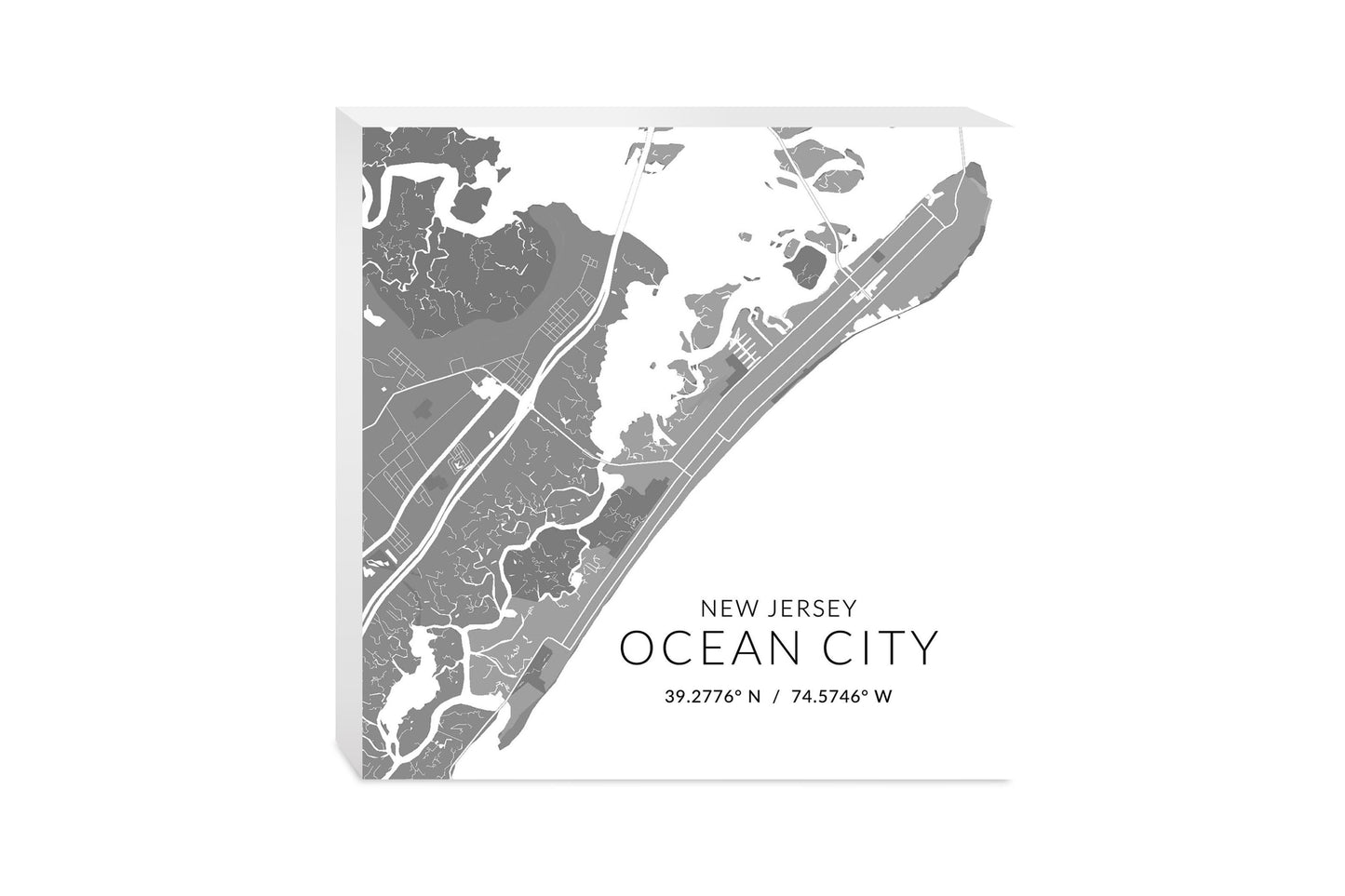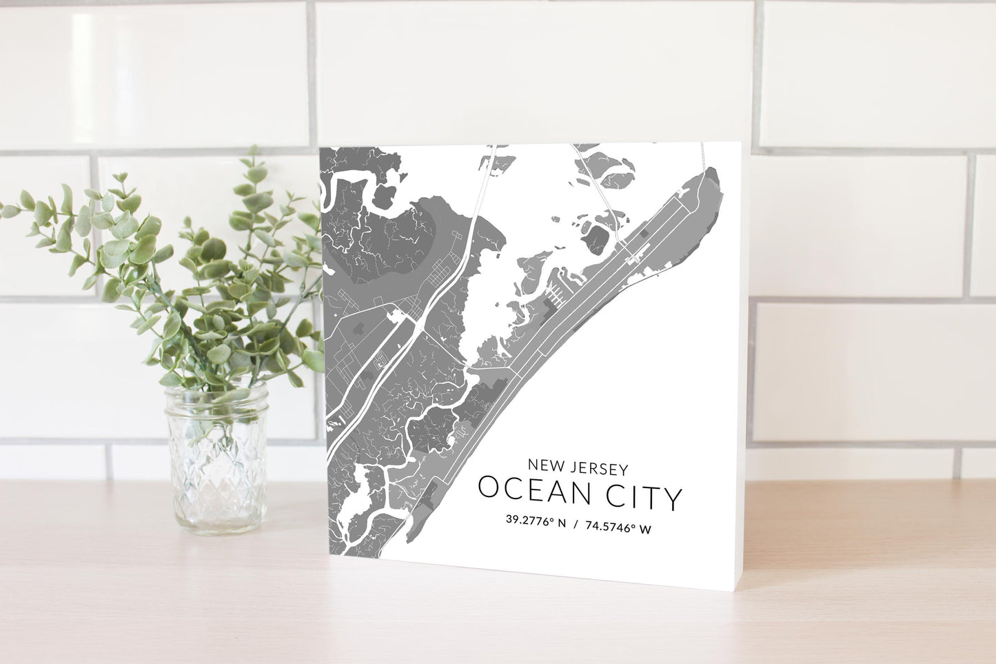 Ocean City Nj Minimalistic Map With Coordinates | Wood Block | Eaches | Min 2