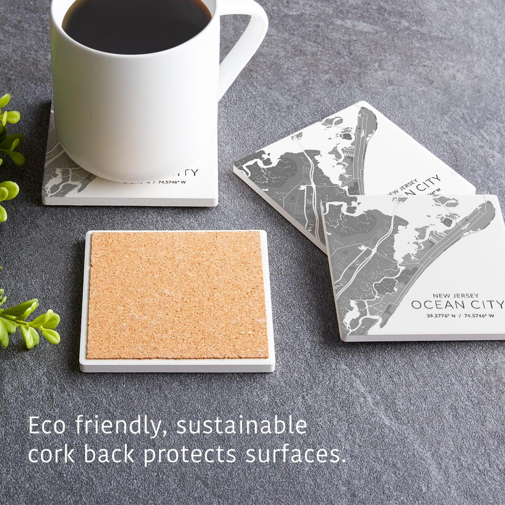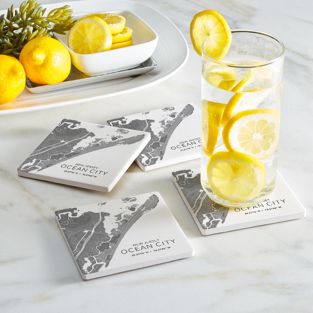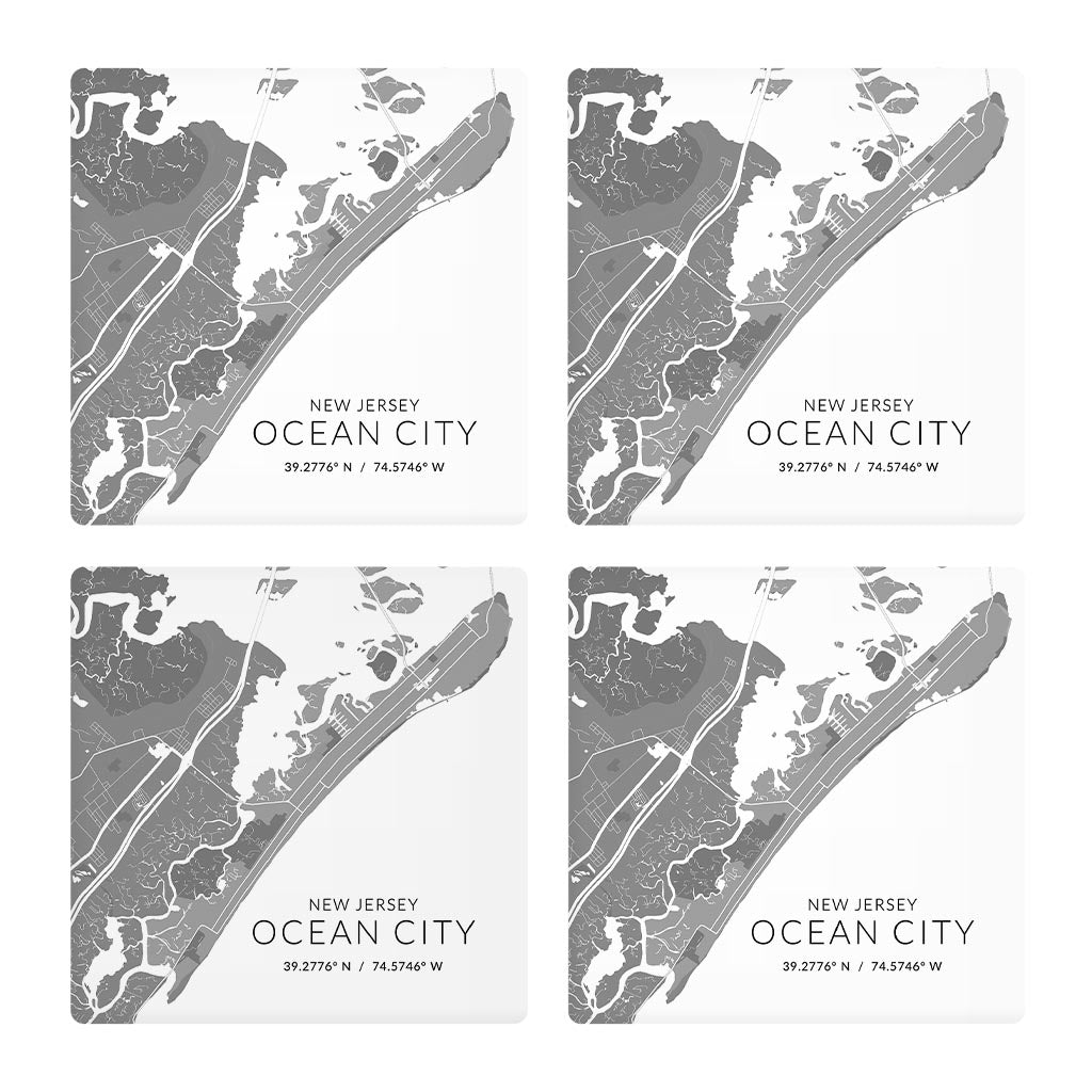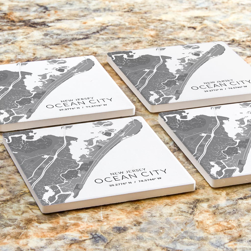 Ocean City Nj Minimalistic Map With Coordinates | Absorbent Coasters | Set of 4 | Min 2