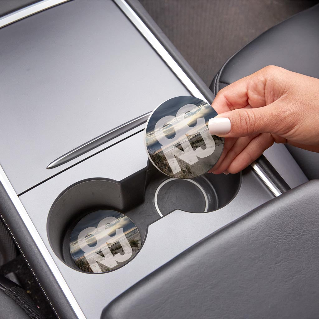 OCNJ Photo With Text | Absorbent Car Coasters | Set of 2 | Min 4