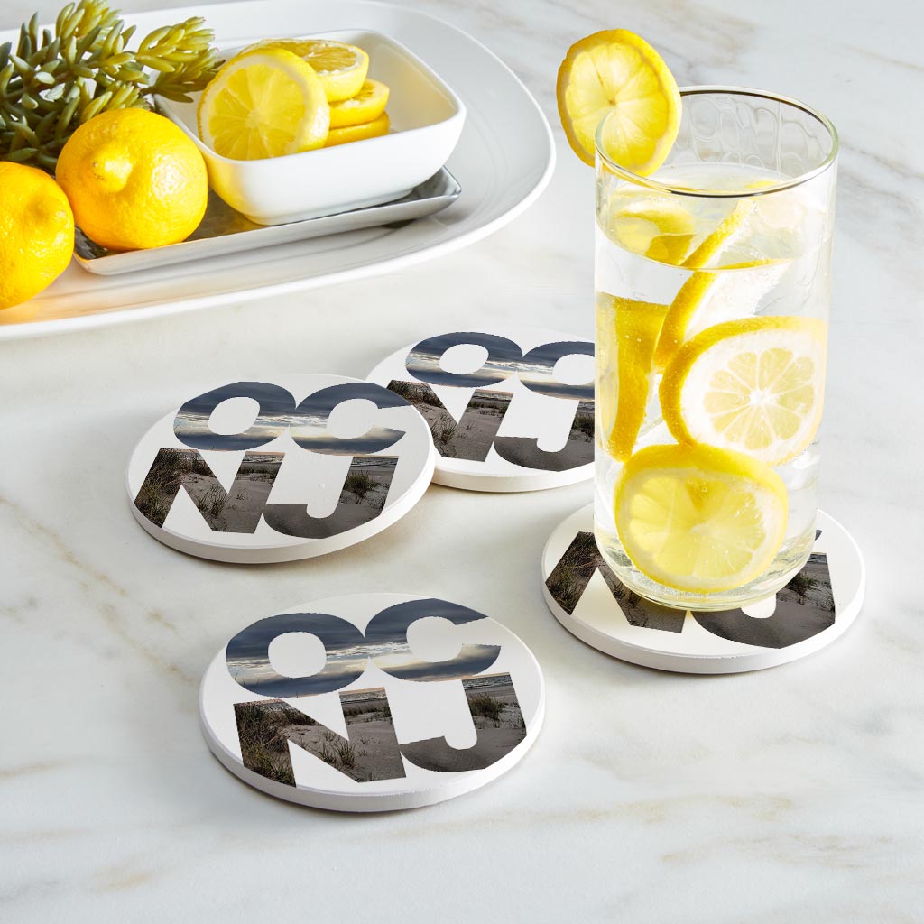 OCNJ Photo With Text | Absorbent Coasters | Set of 4 | Min 2