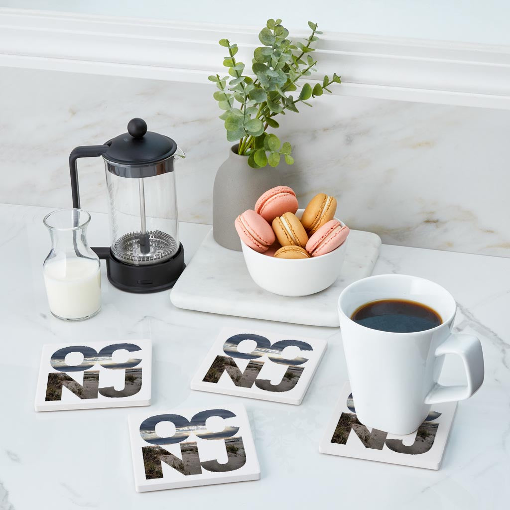 OCNJ Photo With Text | Absorbent Coasters | Set of 4 | Min 2