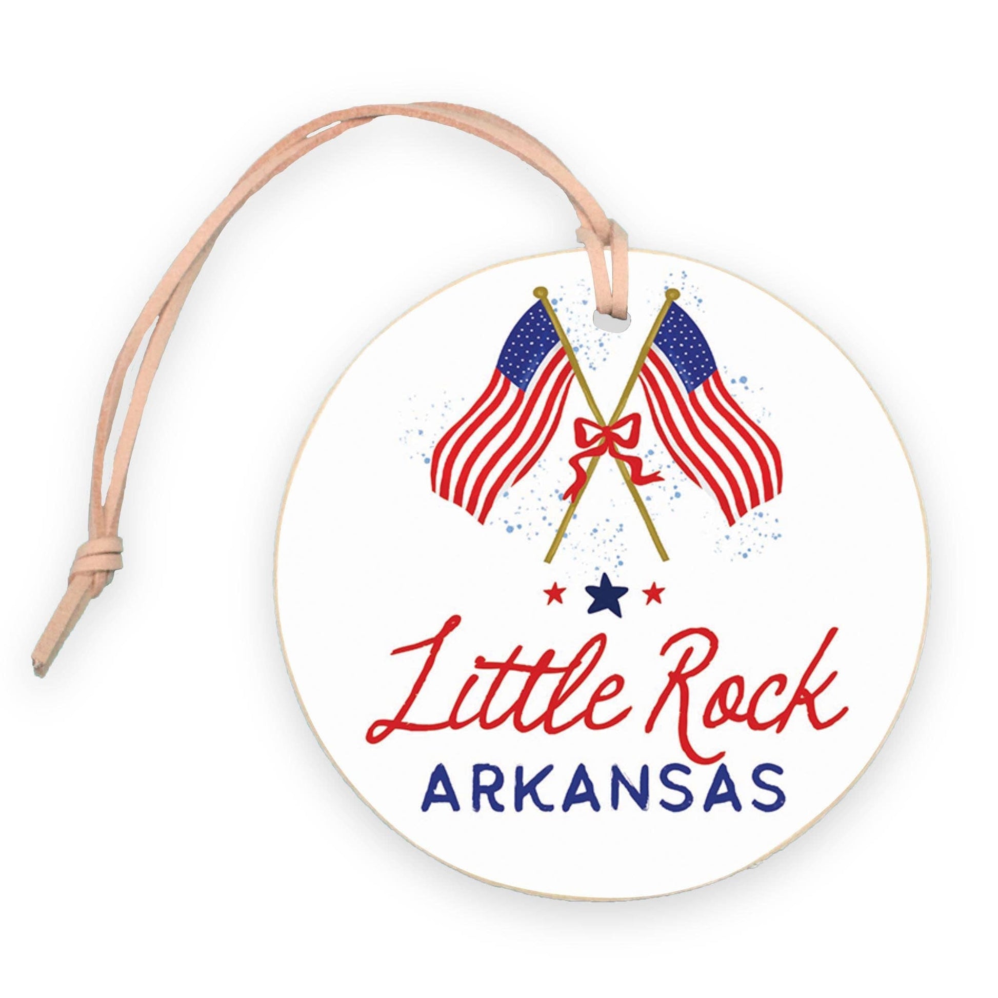 Celebrate local pride with our handcrafted wooden ornaments, featuring an American flag design that pays homage to our great nation. Each piece is intricately made in Laurel, Mississippi, ensuring that every ornament carries a story and a sense of community connection. With its charming aesthetic, this ornament not only celebrates your customers' love for their hometowns but also adds a warm, nostalgic touch to any holiday decor.
