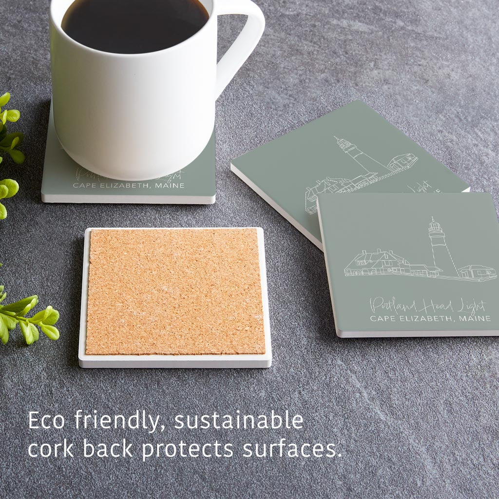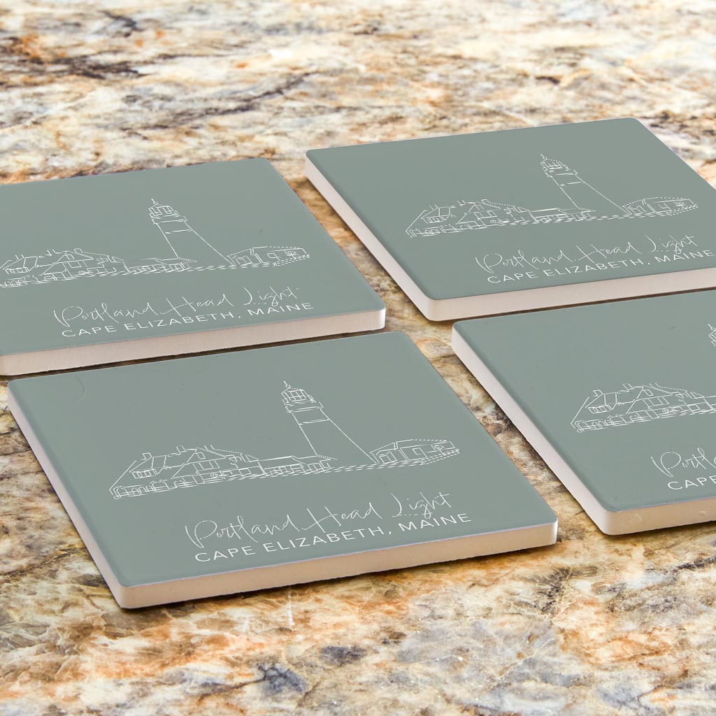 Portland Head Light Muted Coastal | Absorbent Coasters | Set of 4 | Min 2