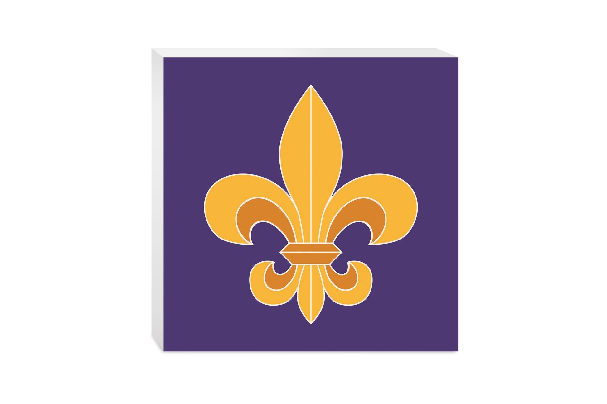 Purple Gold Louisiana Fleur De Lis | Wood Block | Eaches | Min 2