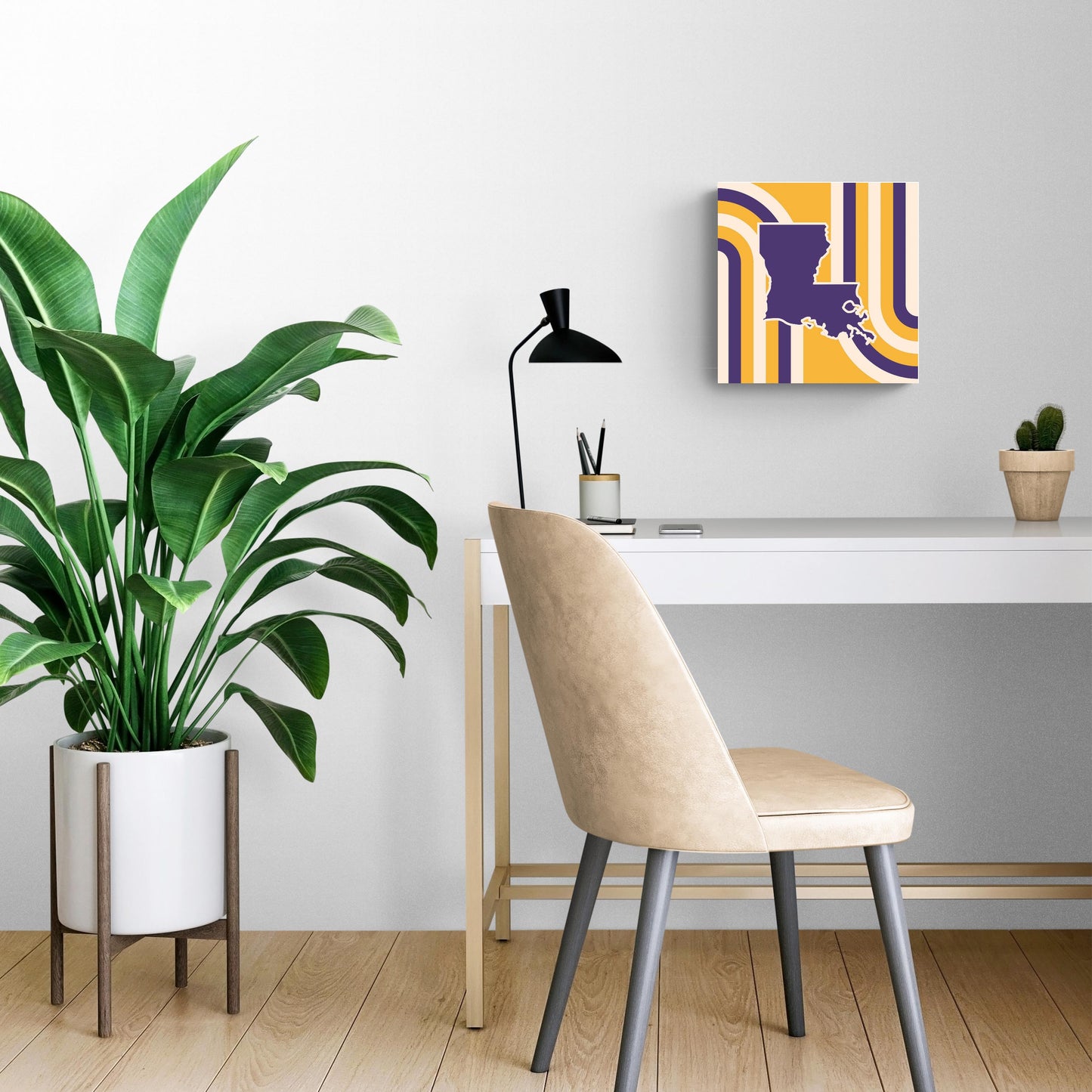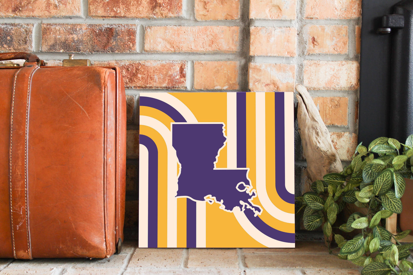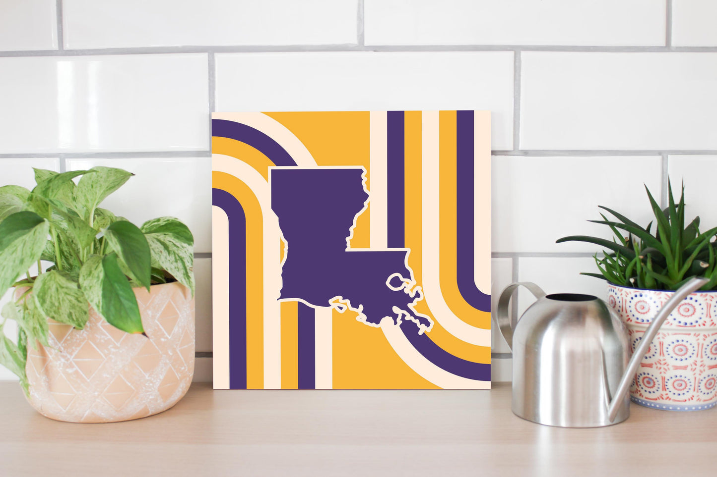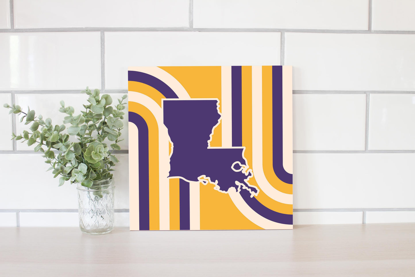 Purple Gold Louisiana Retro State Shape | Wood Sign | Eaches | Min 2