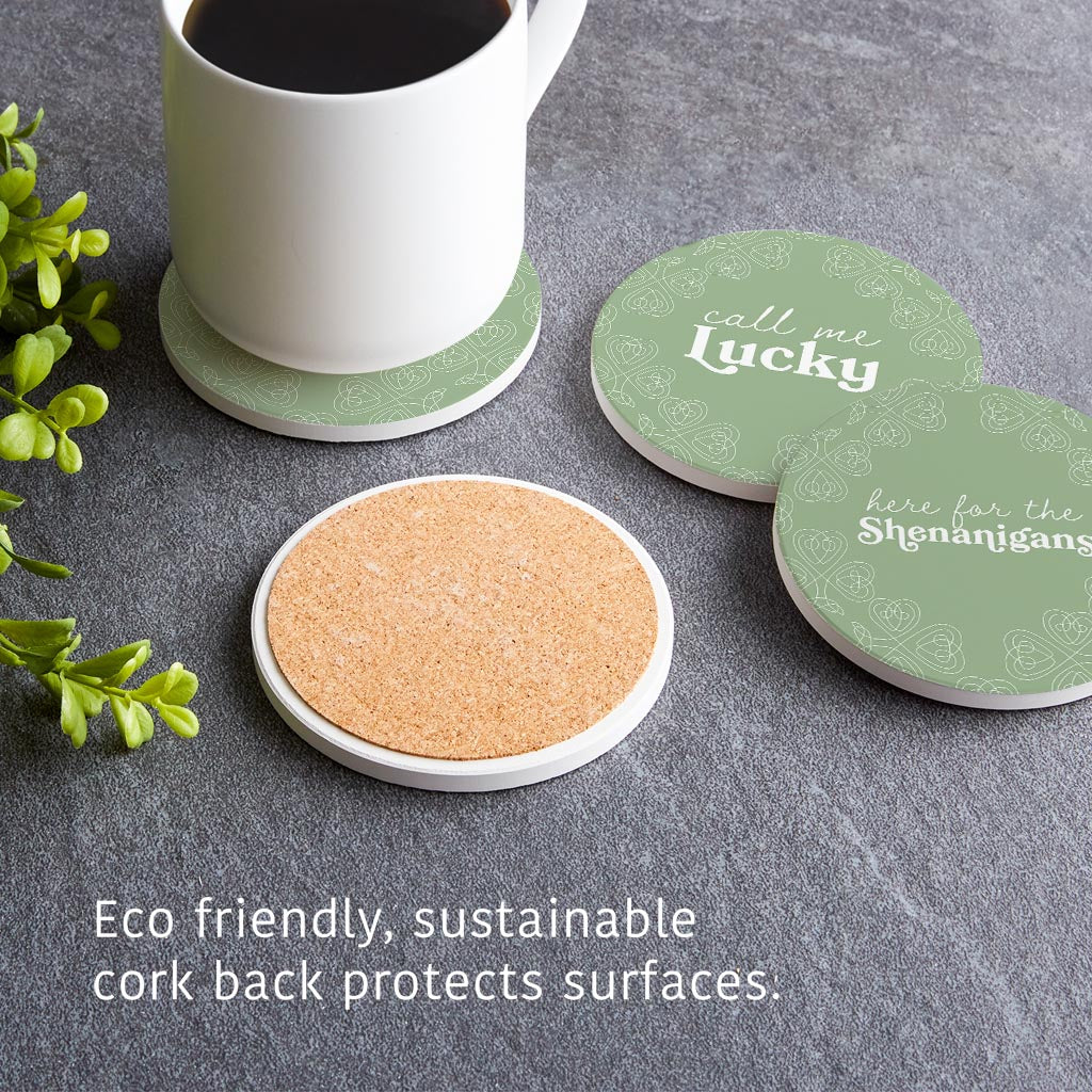 Sage Green Shamrock Funny Sayings| Absorbent Coasters | Set of 4 | Min 2
