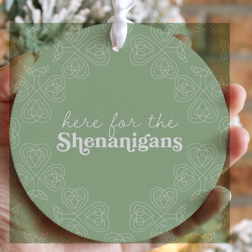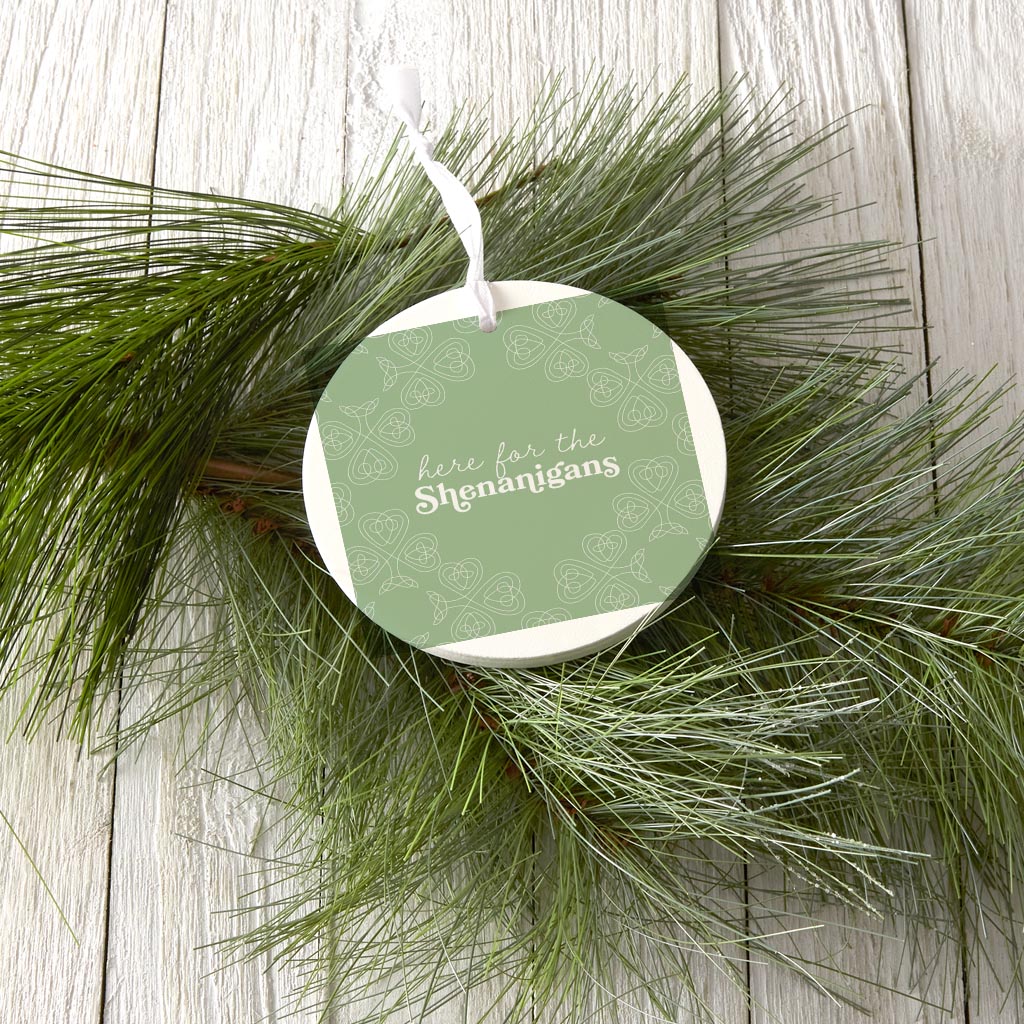 Sage Green Shamrock Here For The Shenanigans| Wood Ornament | Eaches | Min 6
