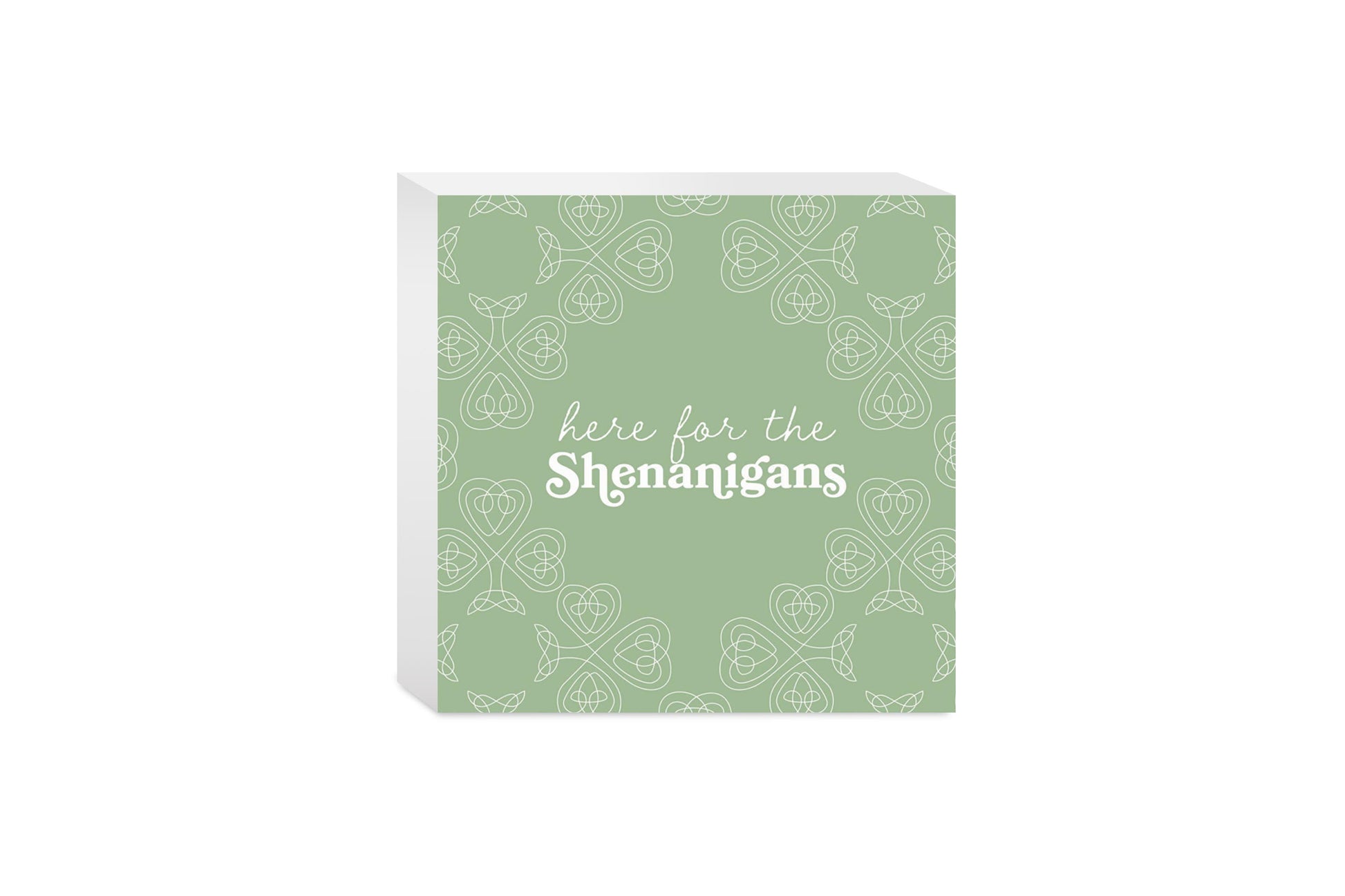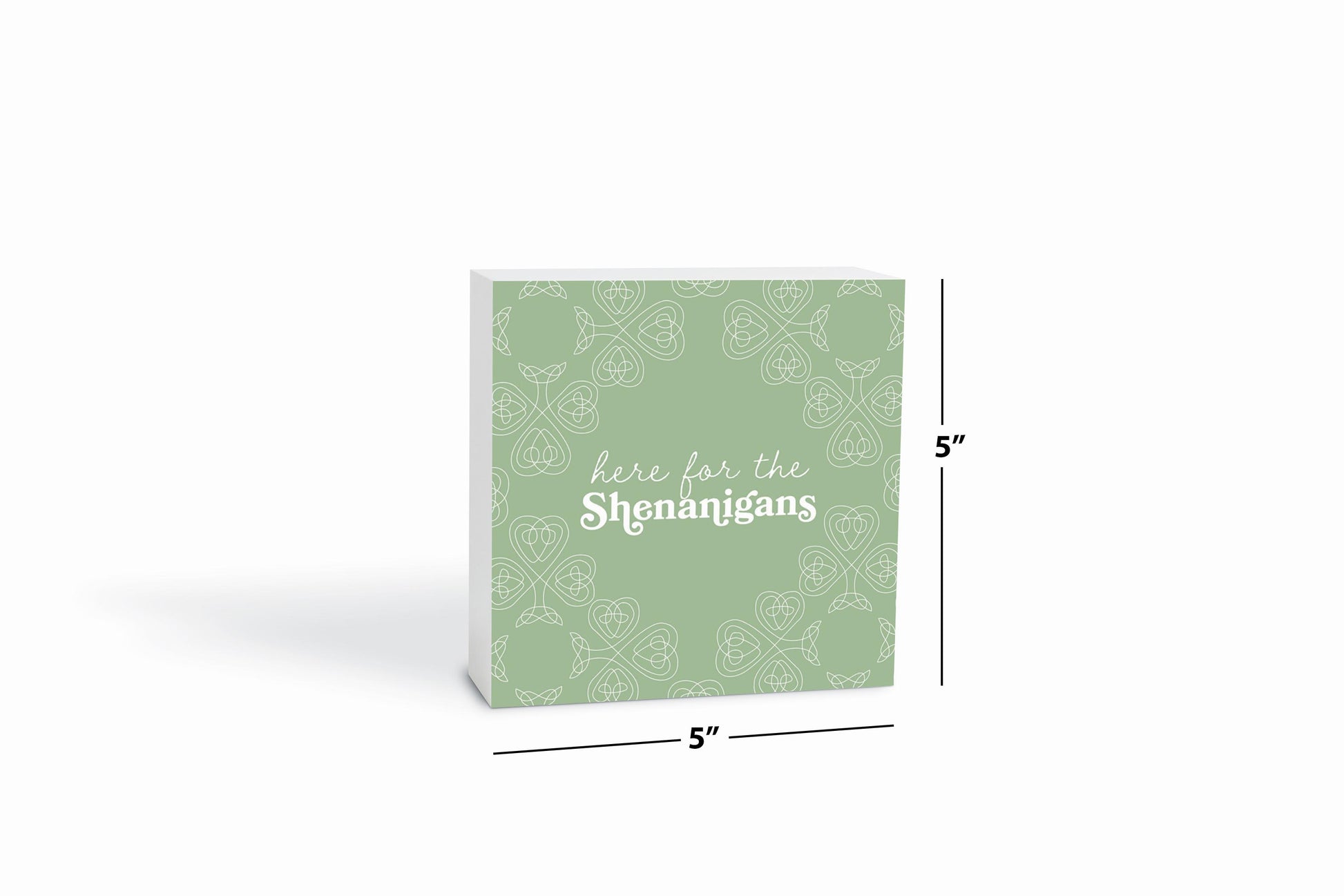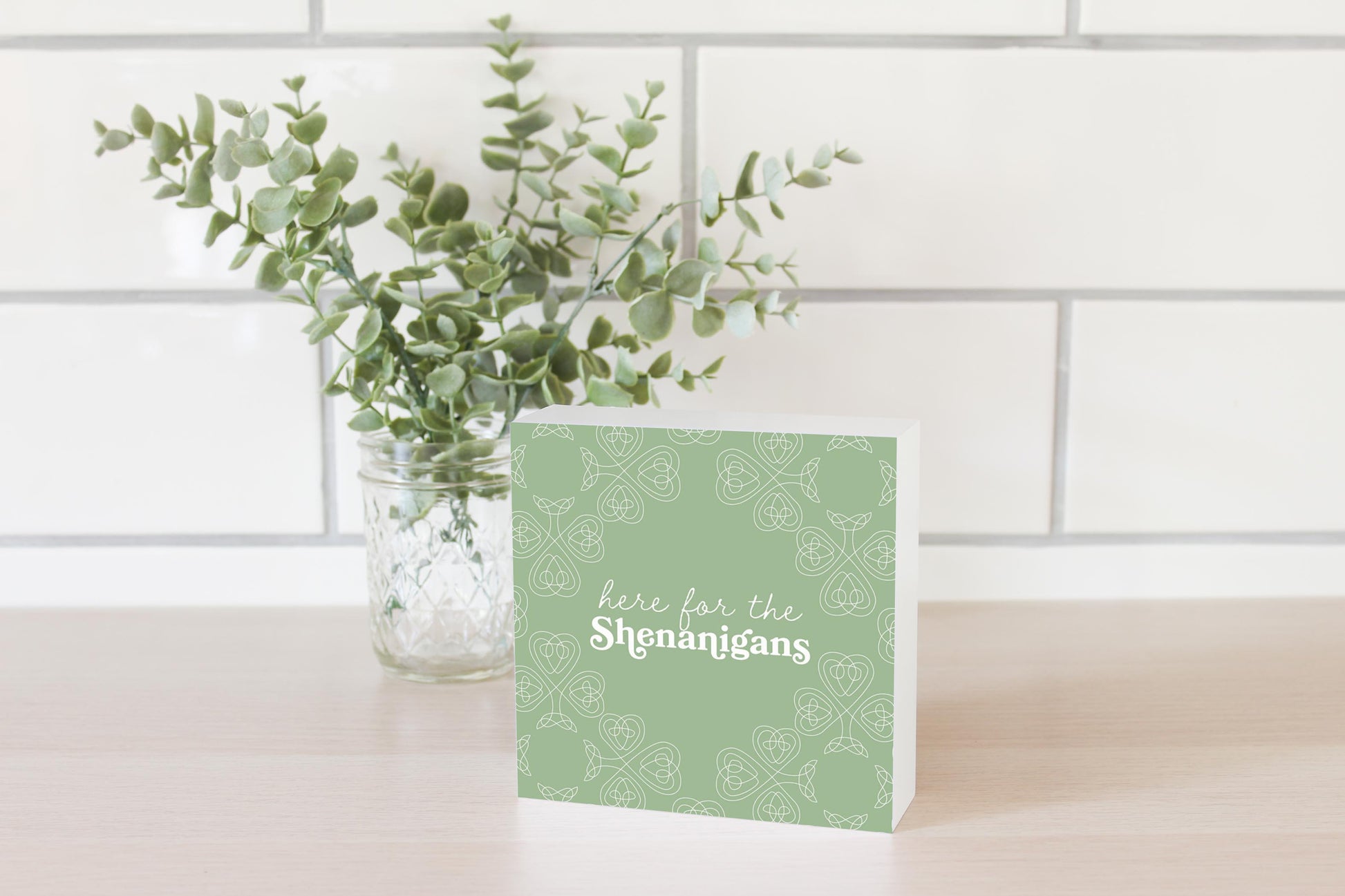 Sage Green Shamrock Here For The Shenanigans | Wood Block | Eaches | Min 4