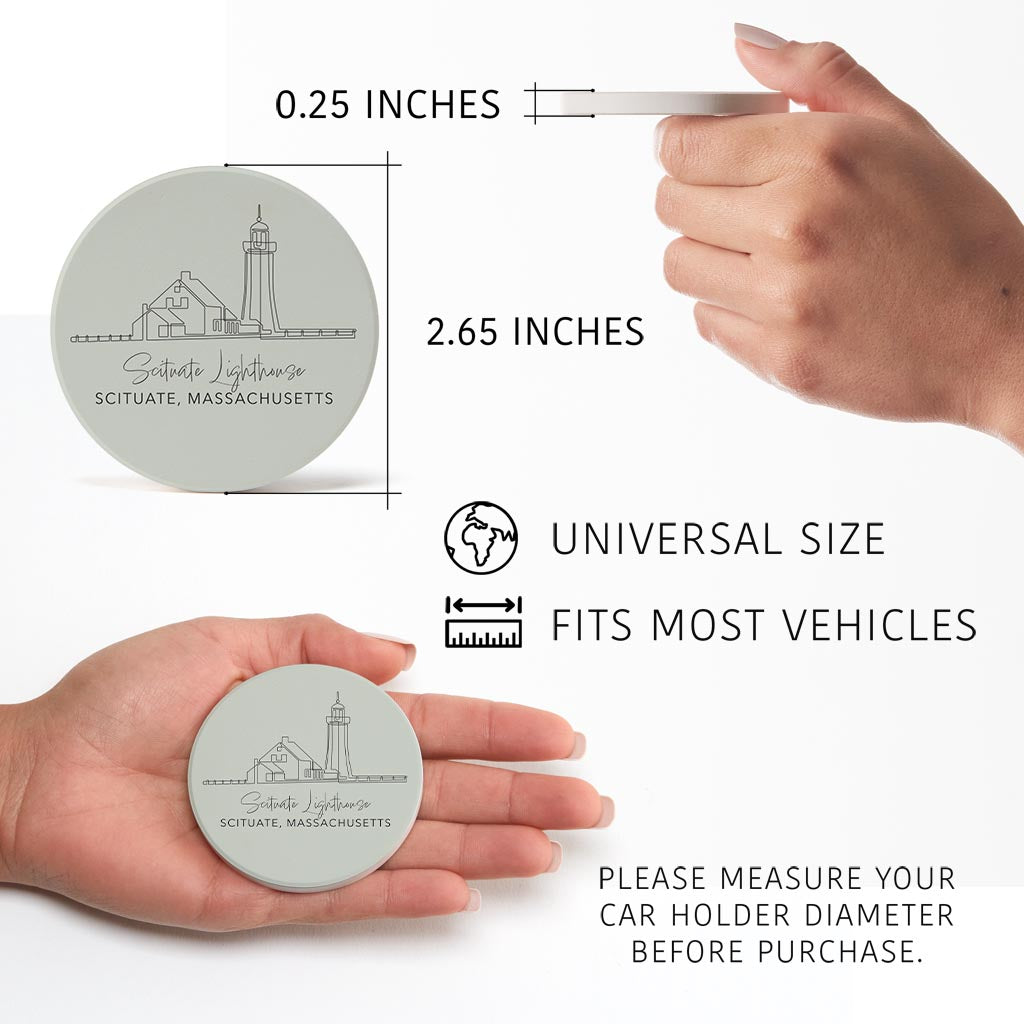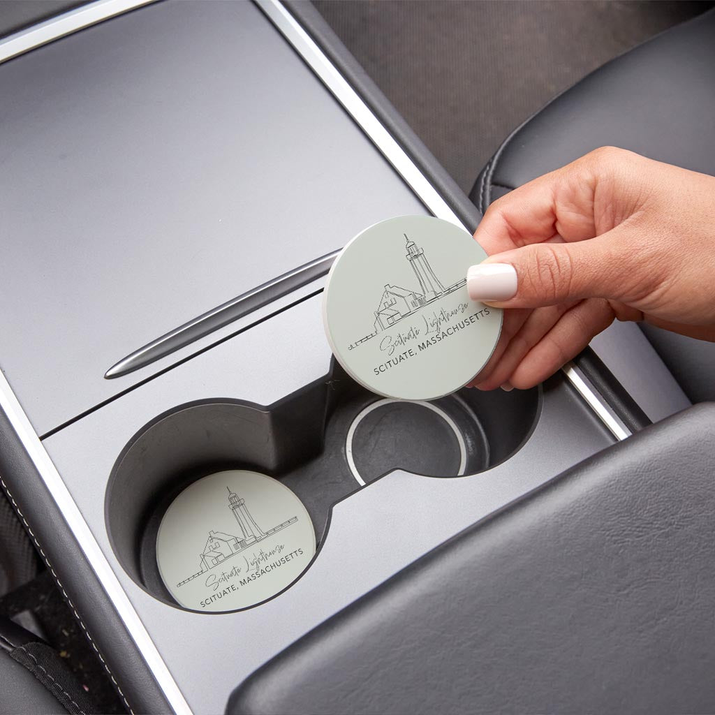Scituate Lighthouse Muted Coastal | Absorbent Car Coasters | Set of 2 | Min 4
