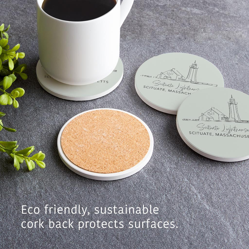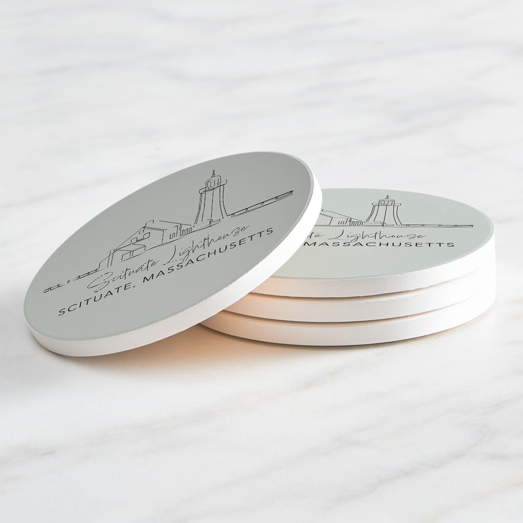 Scituate Lighthouse Muted Coastal | Absorbent Coasters | Set of 4 | Min 2