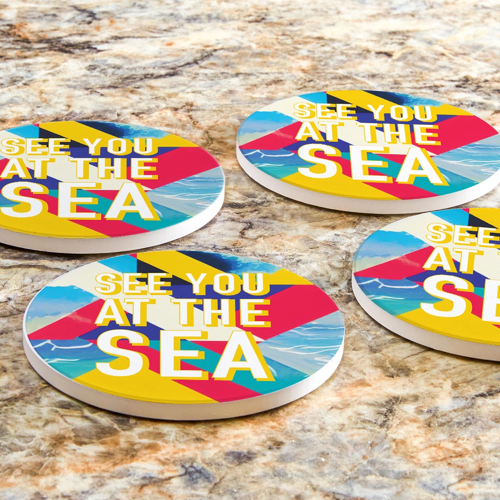 See You At The Sea | Absorbent Coasters | Set of 4 | Min 2