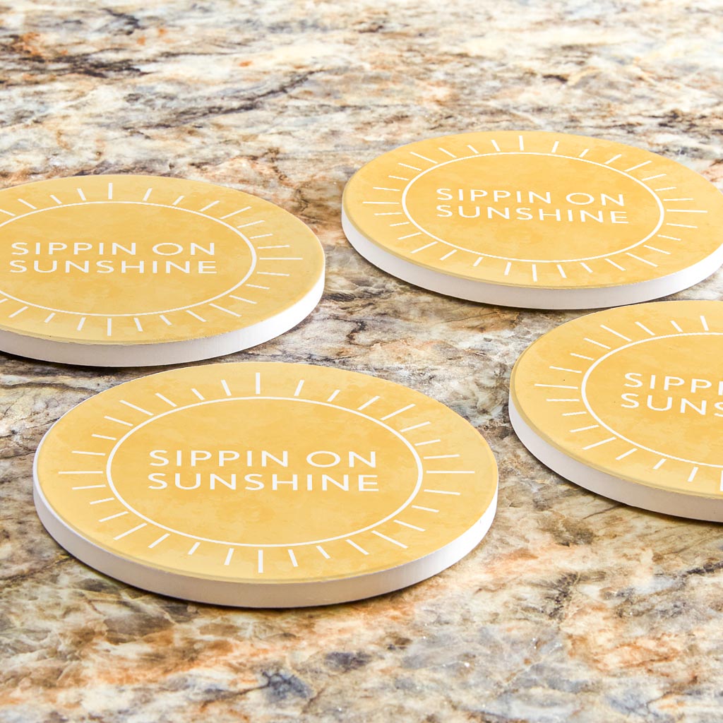 Sippin On Sunshine Yellow | Absorbent Coasters | Set of 4 | Min 2