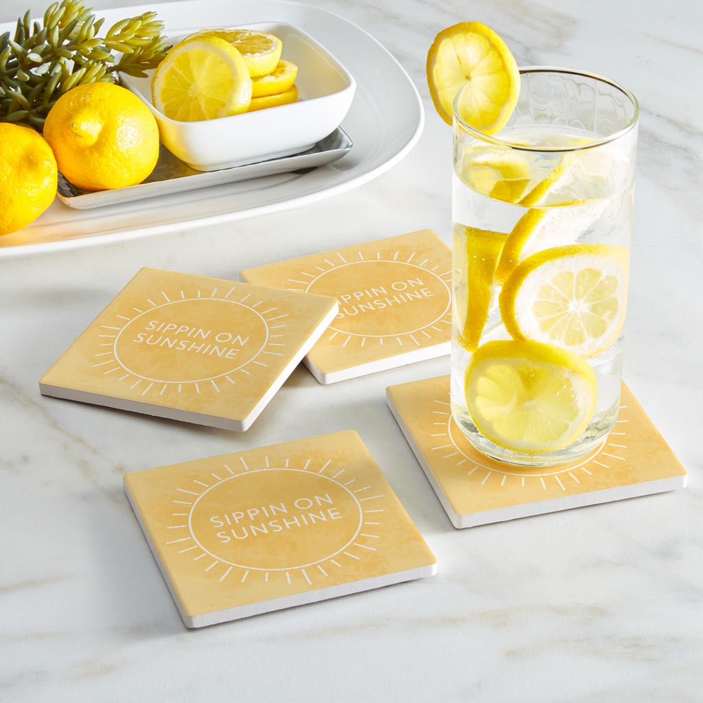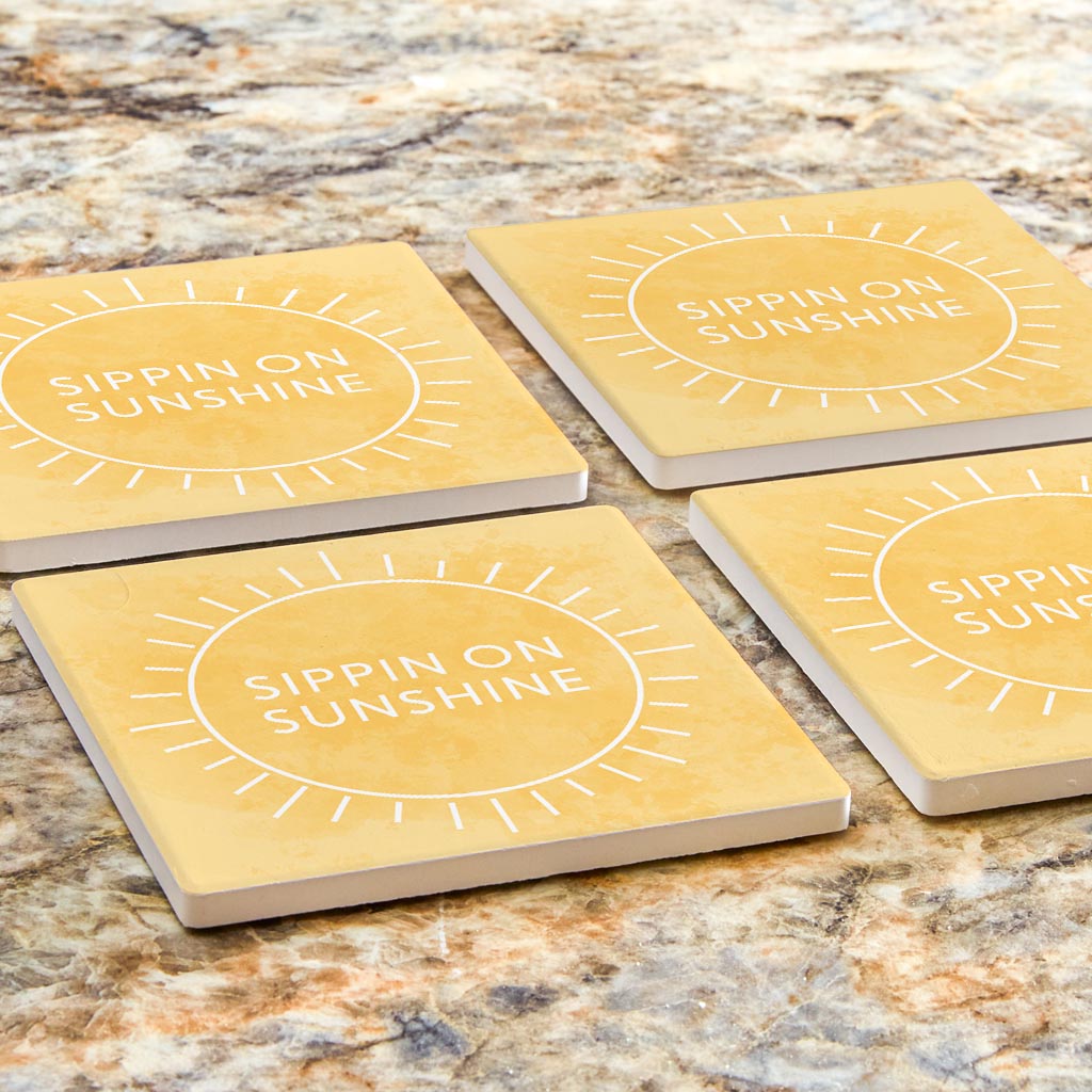 Sippin On Sunshine Yellow | Absorbent Coasters | Set of 4 | Min 2