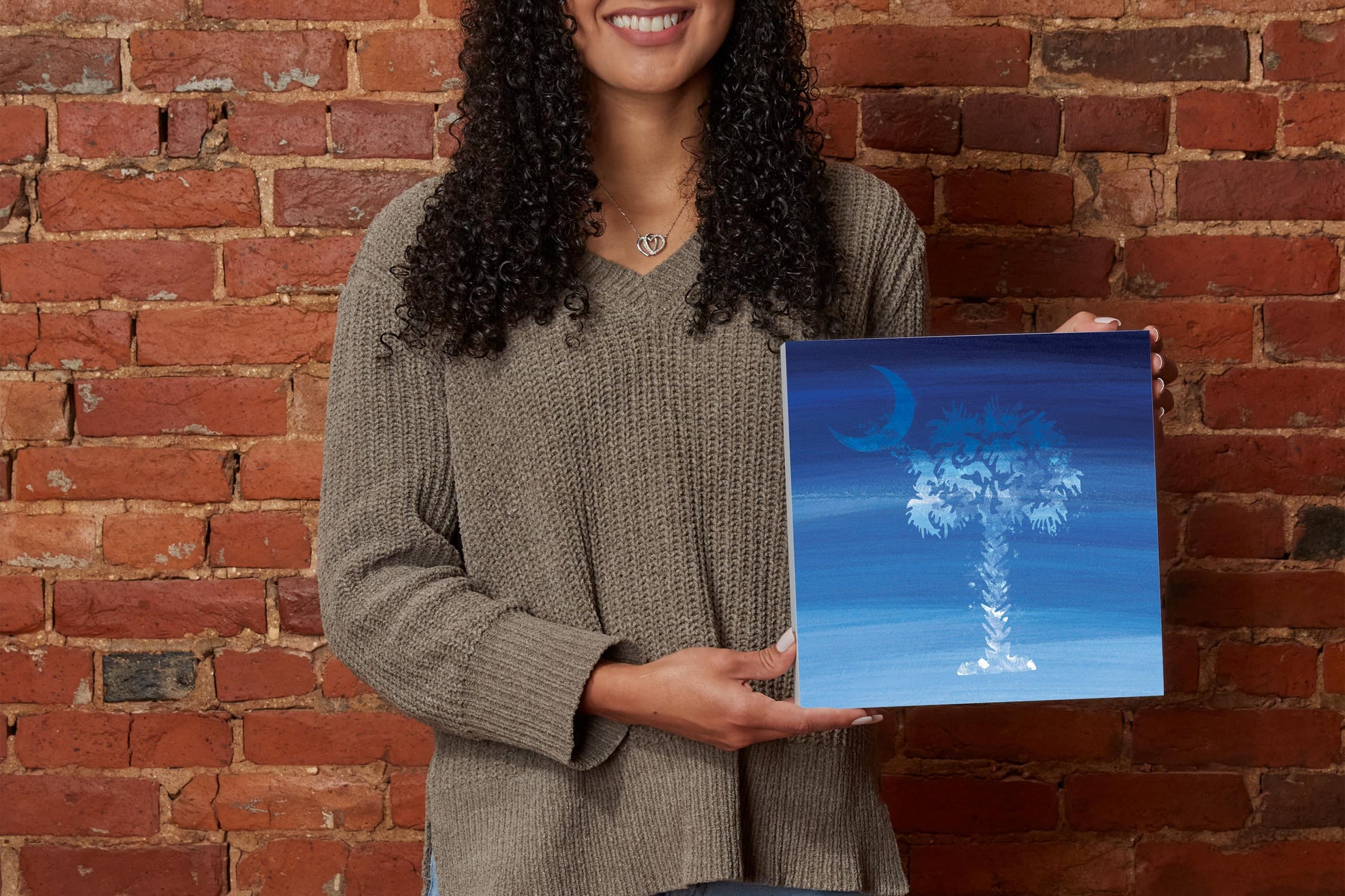South Carolina Blue Water Color Palm Trees | Wood Block | Eaches | Min 2
