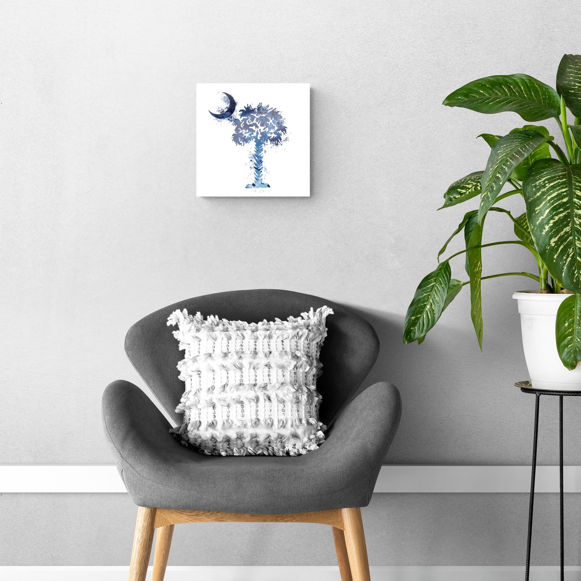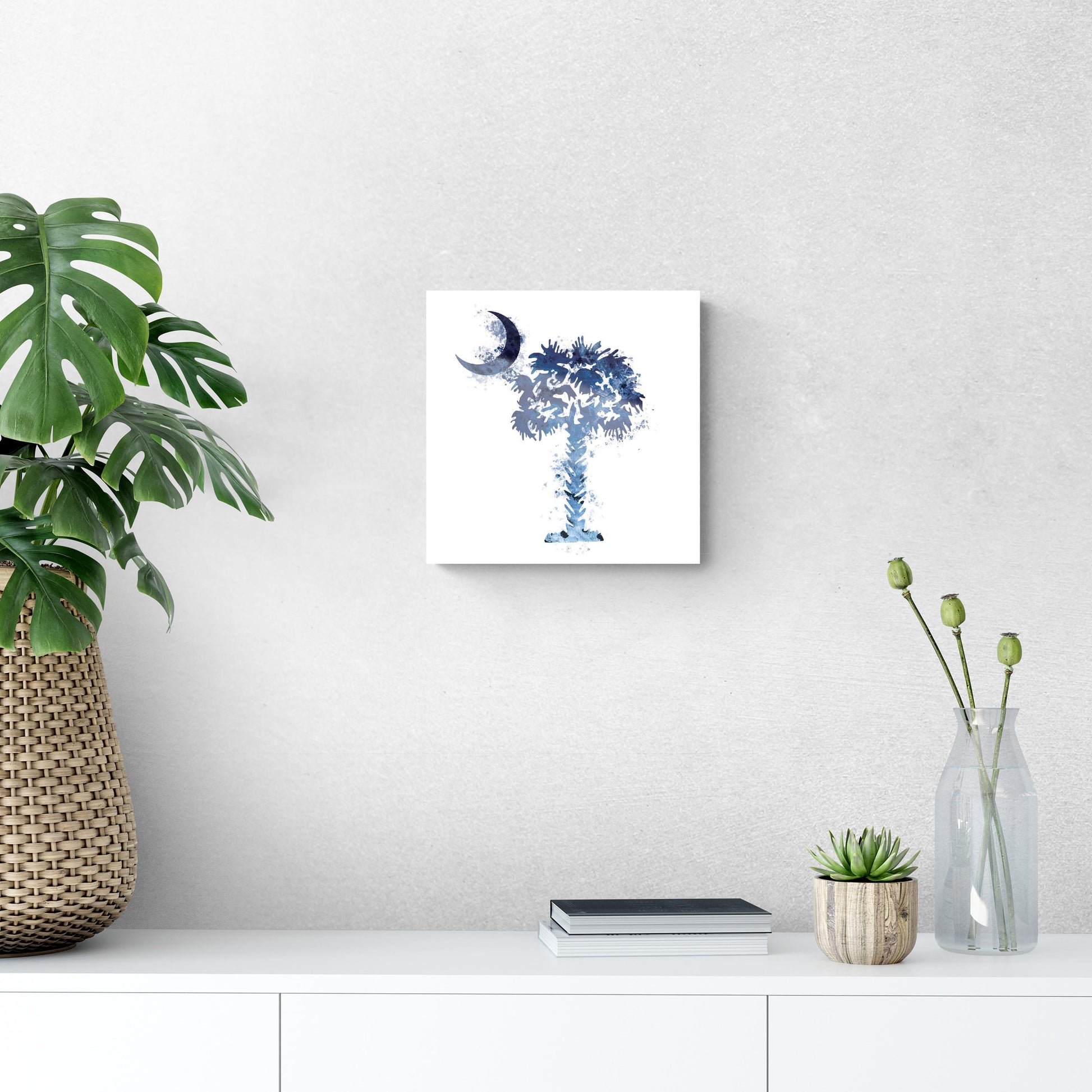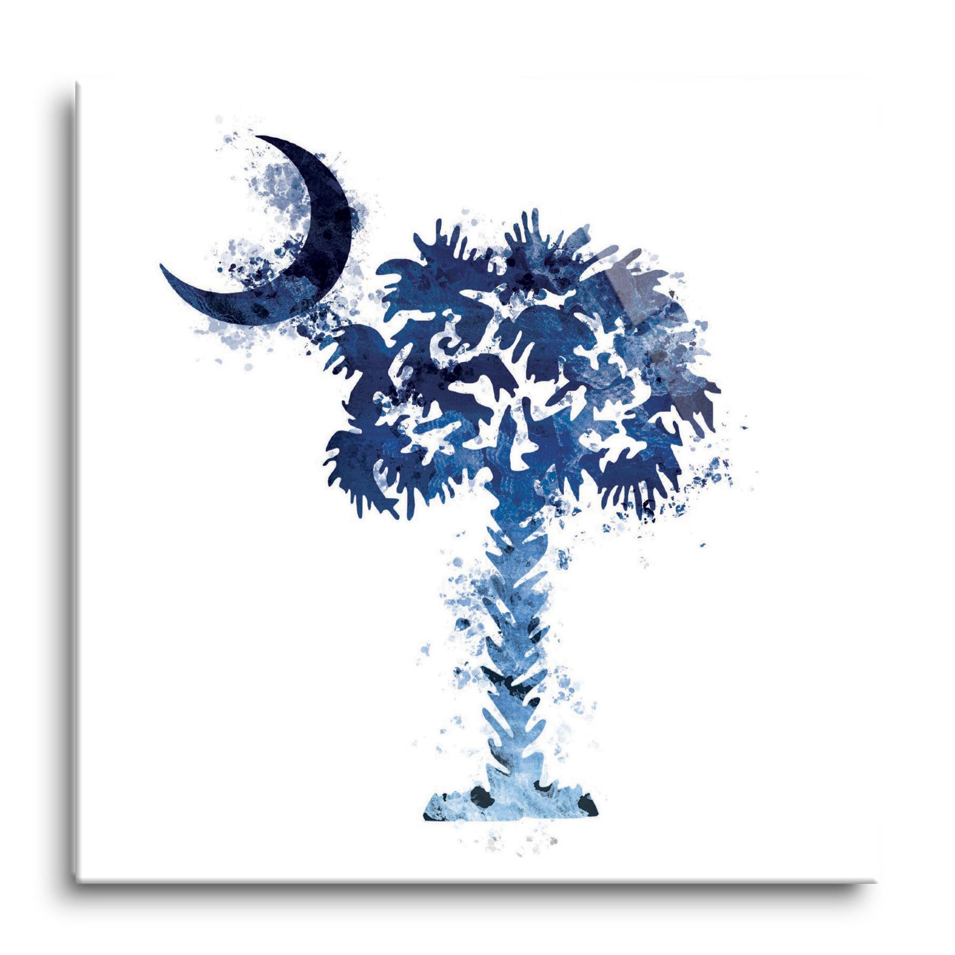 South Carolina Blue Water Color Palm Trees On White | Hi-Def Glass Art | Eaches | Min 1