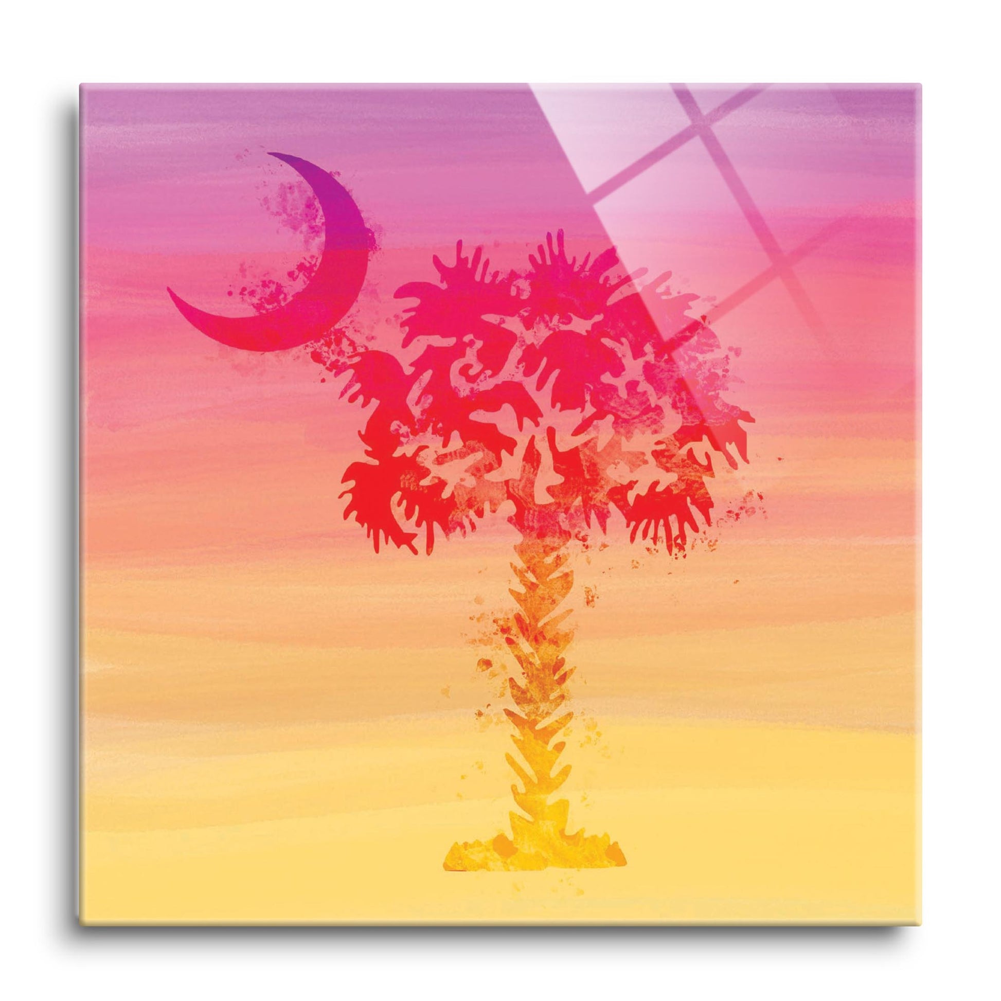 South Carolina Pink Water Color Palm Trees | Hi-Def Glass Art | Eaches | Min 1