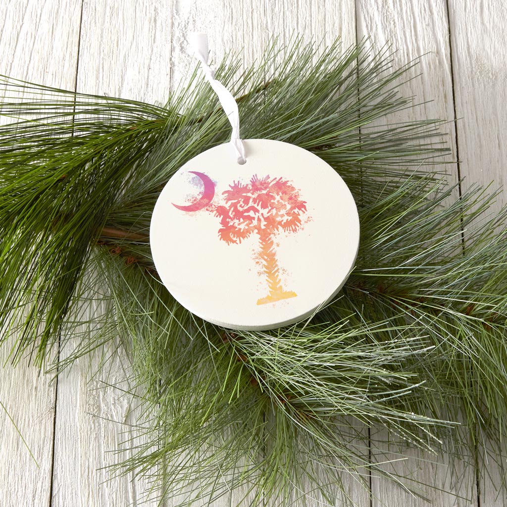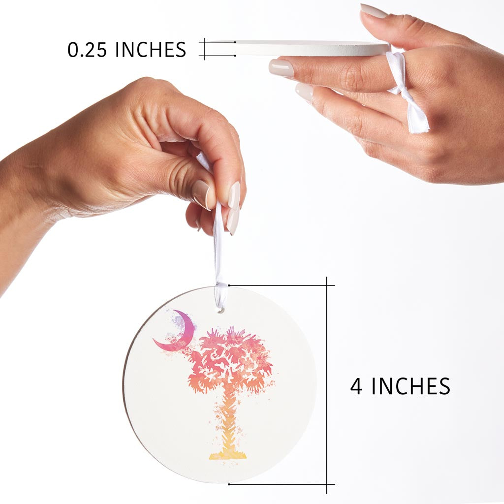 South Carolina Pink Water Color Palm Trees On White | Wood Ornament | Eaches | Min 6