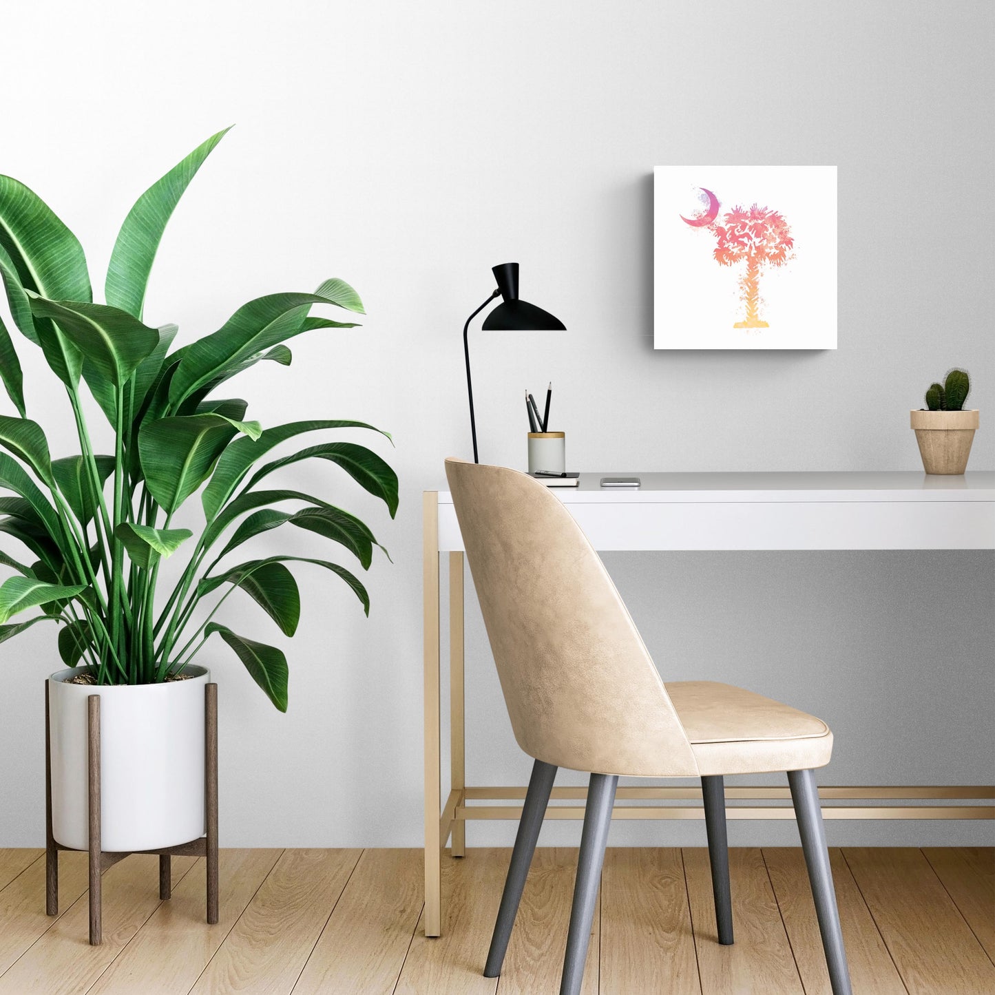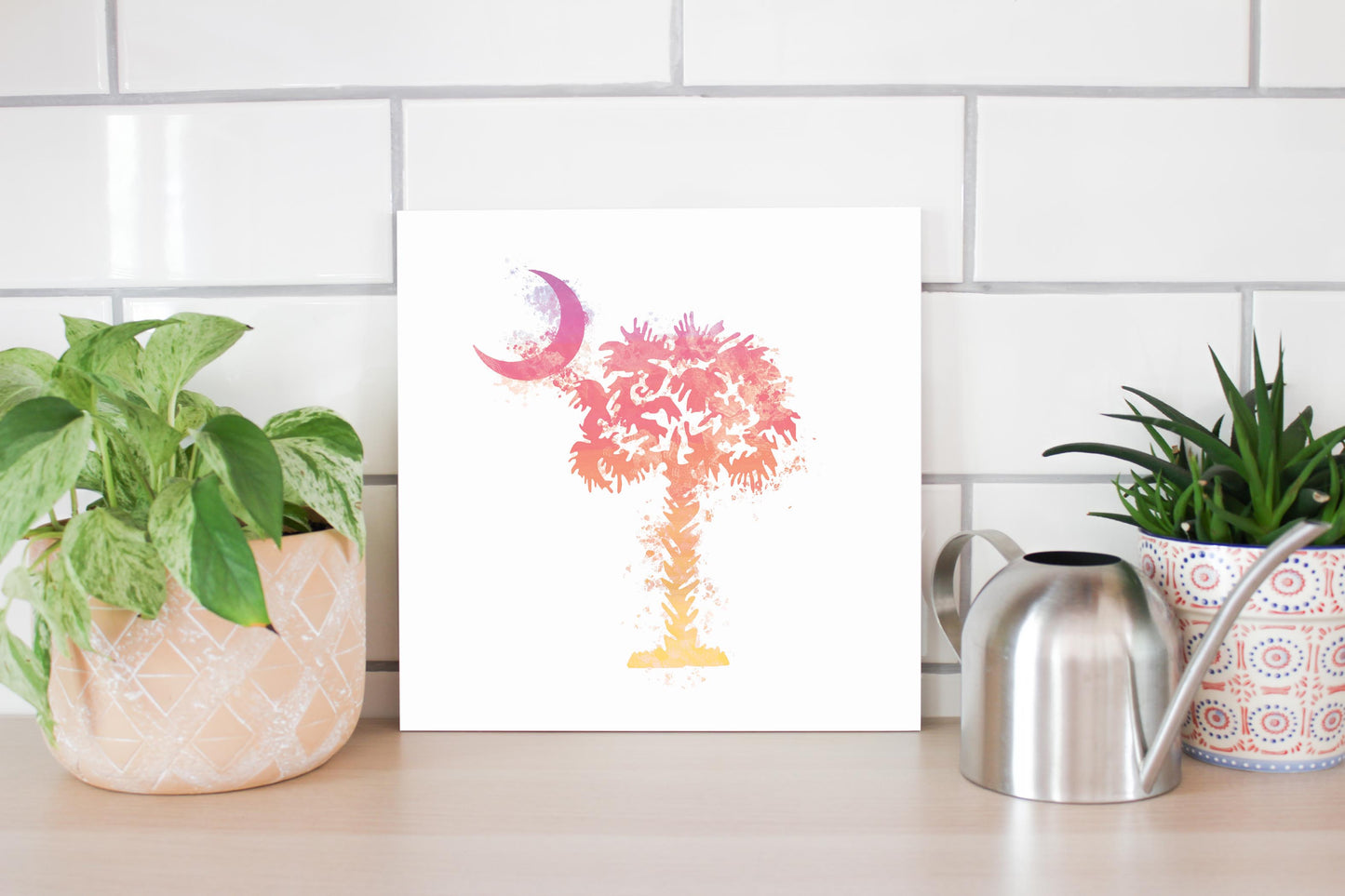 South Carolina Pink Water Color Palm Trees On White | Wood Sign | Eaches | Min 2