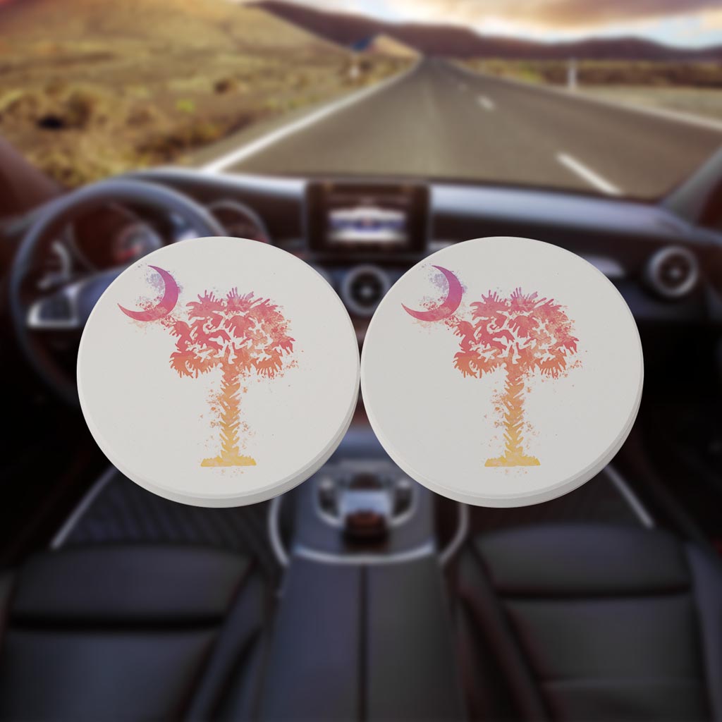 South Carolina Pink Water Color Palm Trees On White | Absorbent Car Coasters | Set of 2 | Min 4