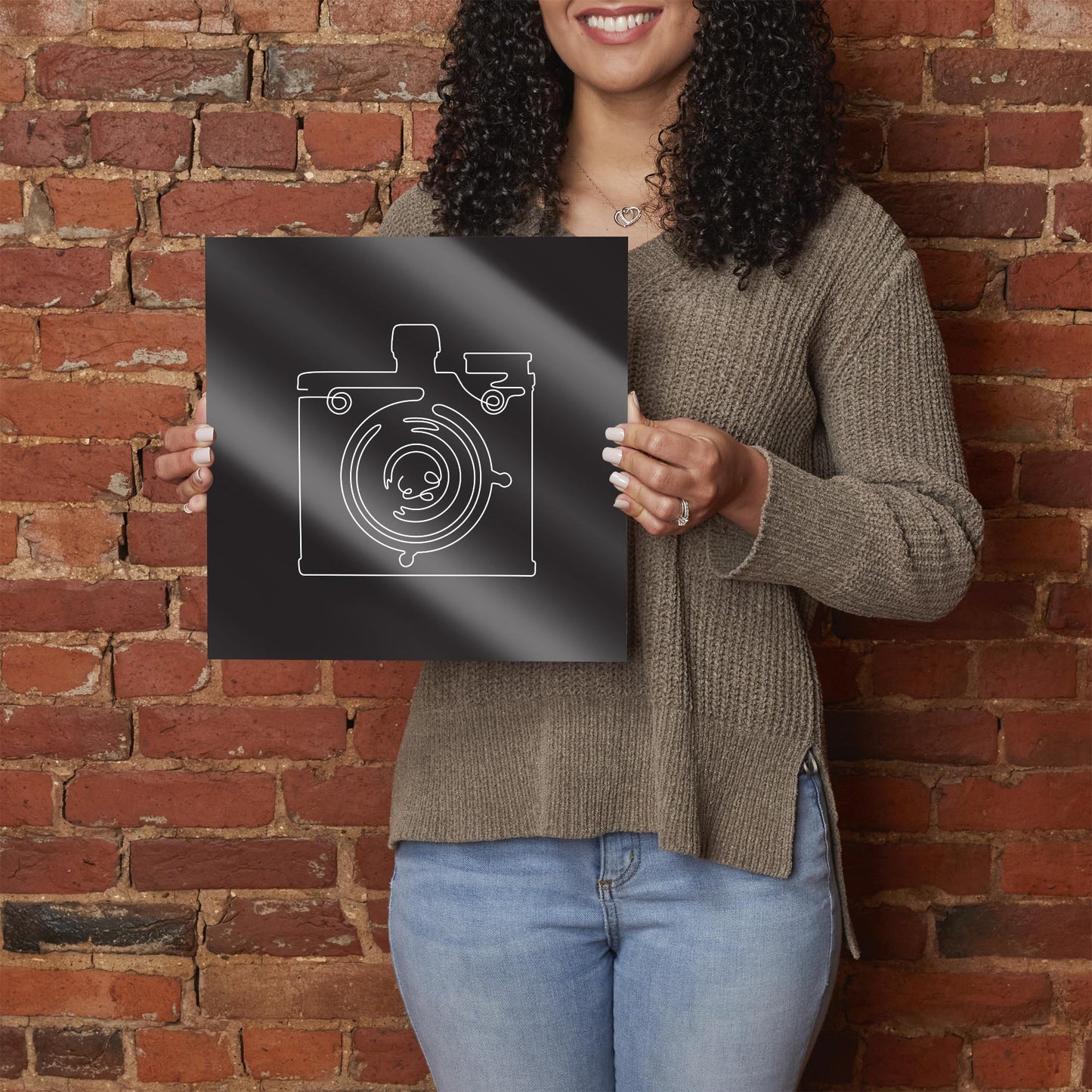 Vintage Camera Line Drawing On Black | Hi-Def Glass Art | Eaches | Min 1