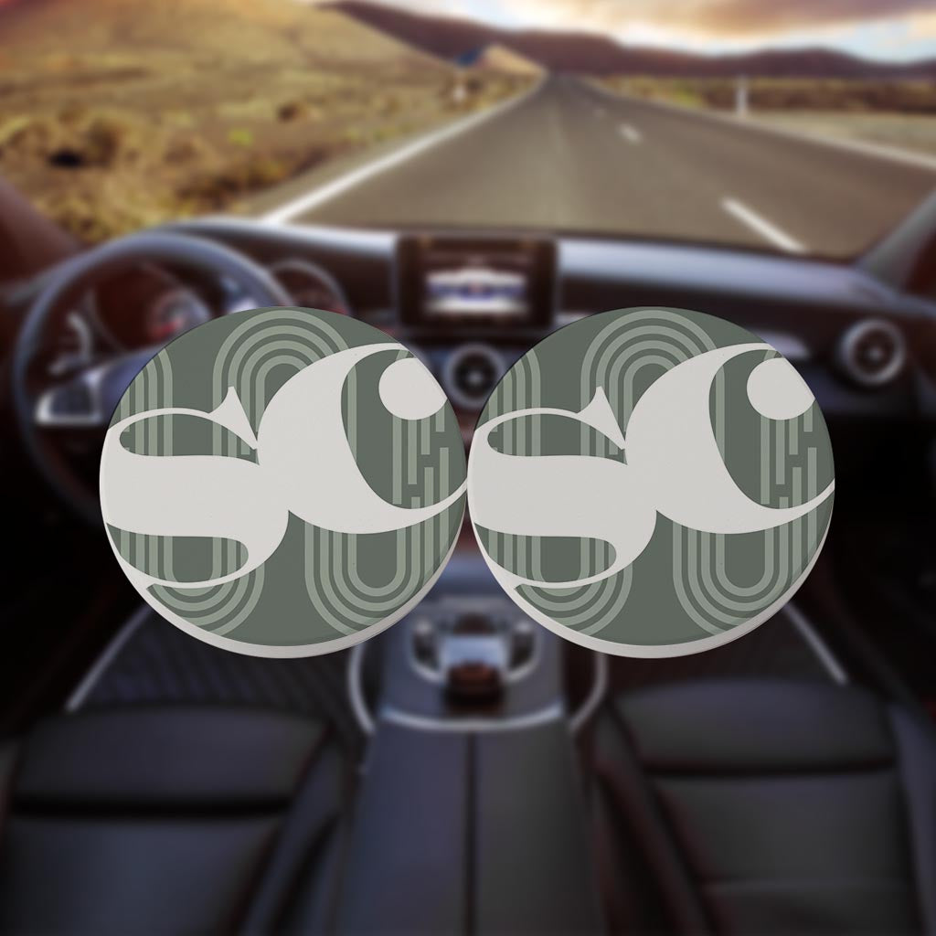 Vintage Groove Green Wave Lines South Carolina Sc| Absorbent Car Coasters | Set of 2 | Min 4