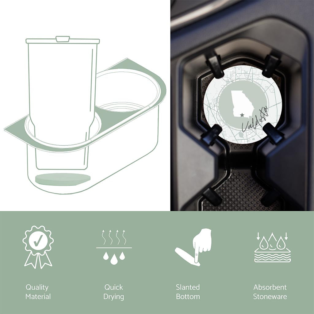 Car coasters are that little accessory that you didn’t know you needed but now consider an essential. Your cupholders are protected and kept clean by absorbing drips from your morning coffee to sticky juice boxes. The strategic divot edge allows you to easily pop it out and wipe clean. No more grime stuck in the cupholder abyss. While car coasters are wonderfully utilitarian, they also inject a little personality and design into the space you spend so much time in. Order an assortment to mix and match to the season or newest trends.