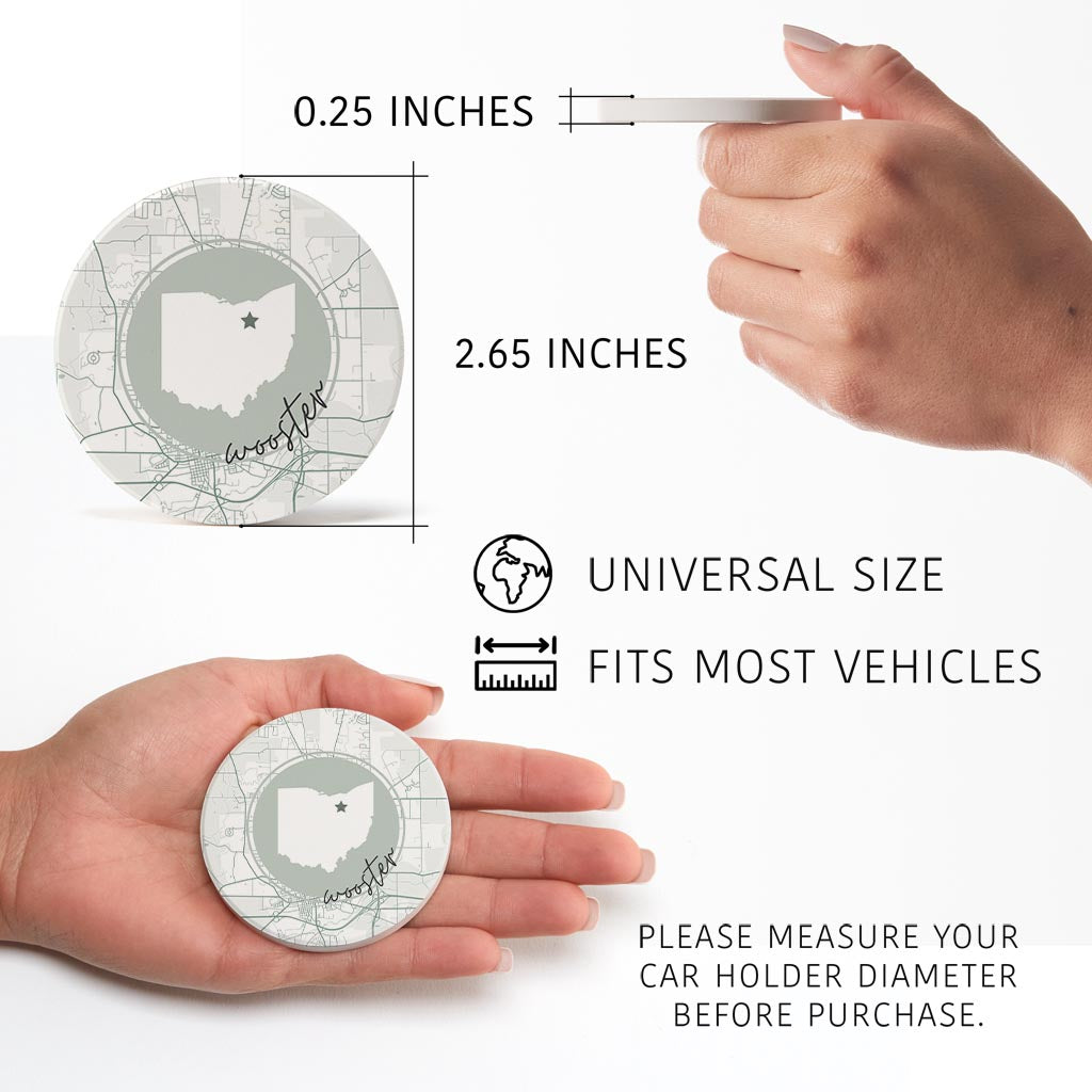 Vintage Groove State Star Map Ohio Wooster | Absorbent Car Coasters | Set of 2 | Min 4