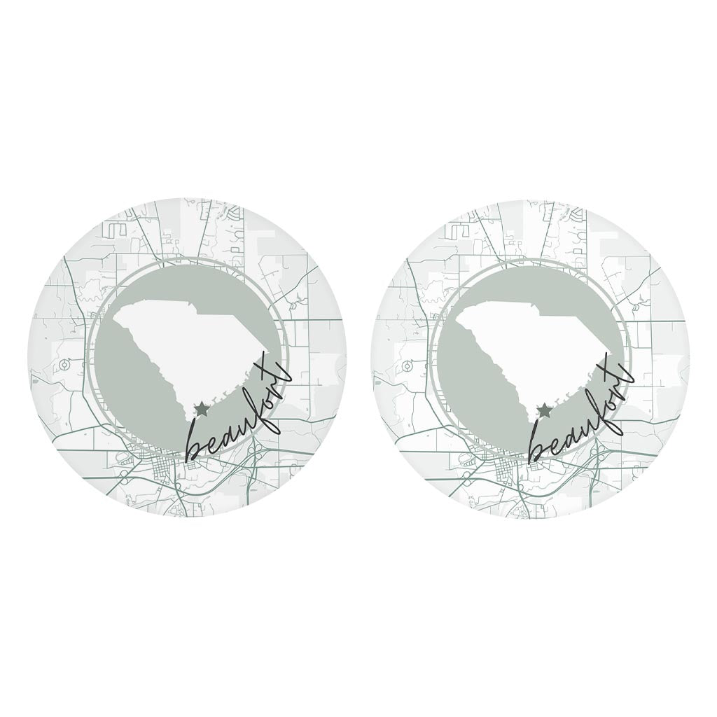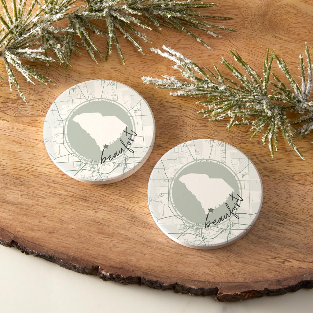 Vintage Groove State Star Map South Carolina Beaufort | Absorbent Car Coasters | Set of 2 | Min 4