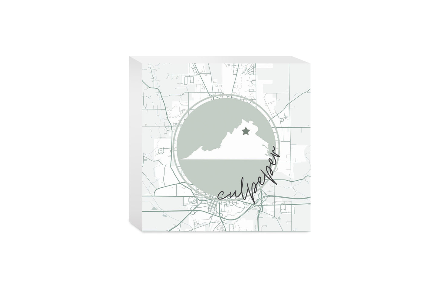 Vintage Groove State Star Map Virginia Culpeper| Wood Block | Eaches | Min 4