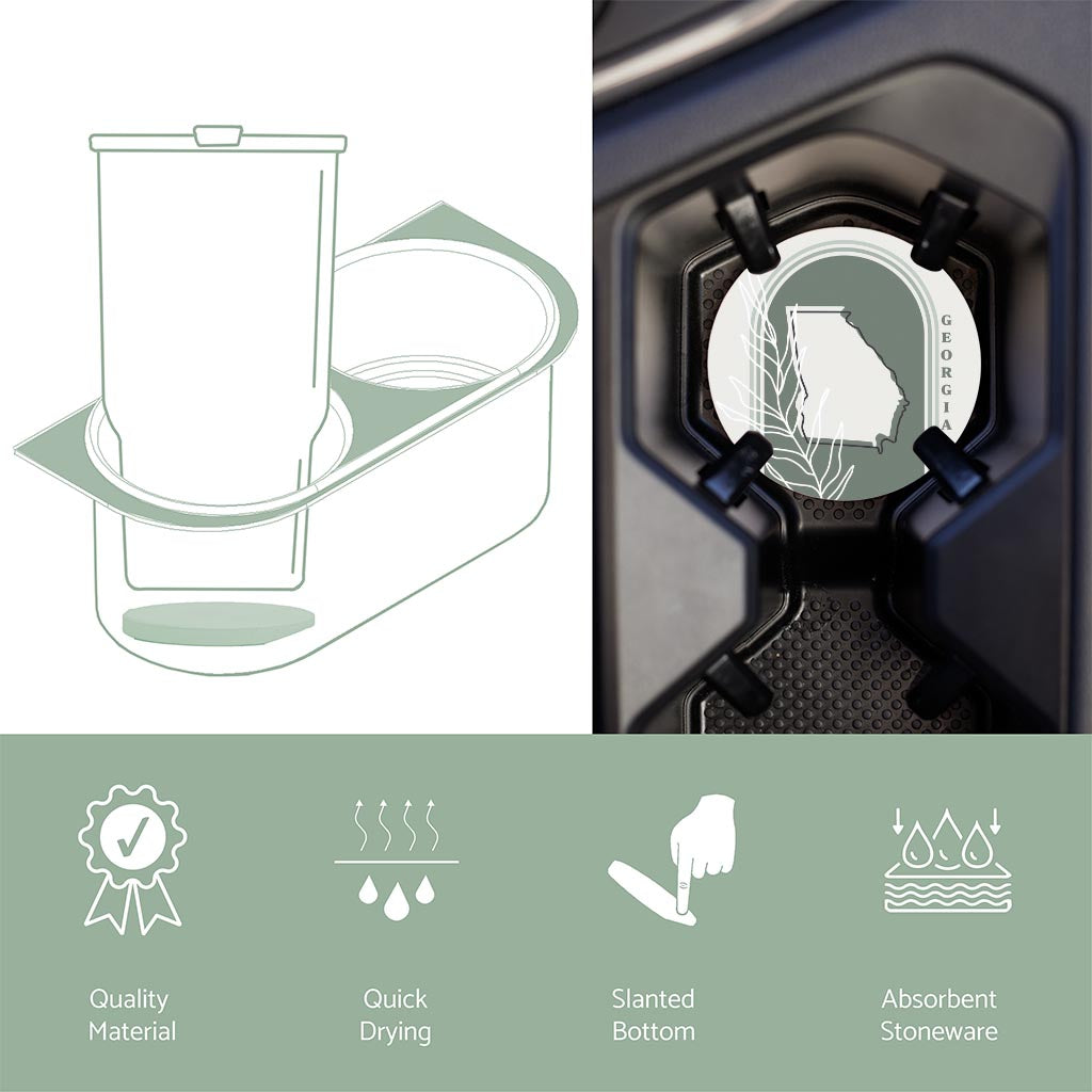 Car coasters are that little accessory that you didn’t know you needed but now consider an essential. Your cupholders are protected and kept clean by absorbing drips from your morning coffee to sticky juice boxes. The strategic divot edge allows you to easily pop it out and wipe clean. No more grime stuck in the cupholder abyss. While car coasters are wonderfully utilitarian, they also inject a little personality and design into the space you spend so much time in. Order an assortment to mix and match to the season or newest trends.