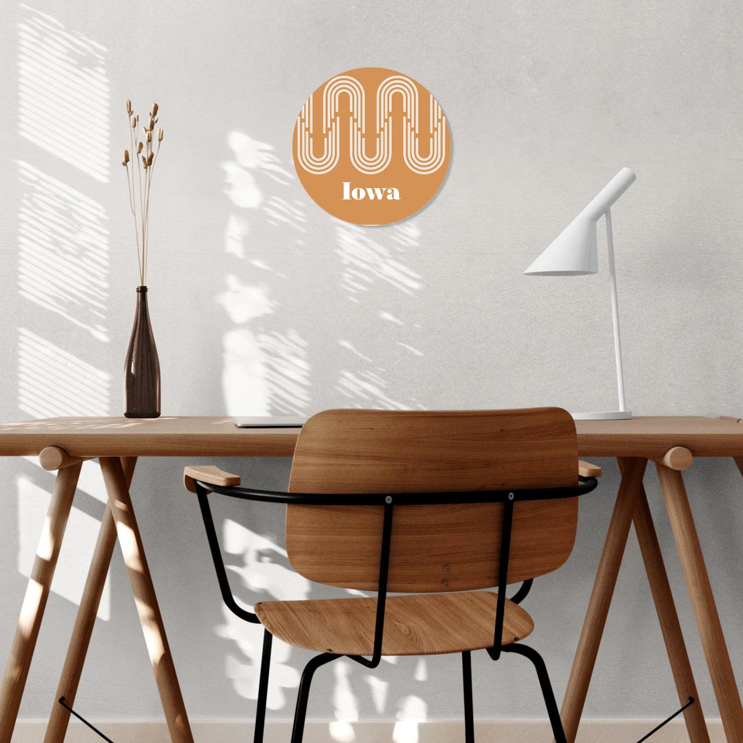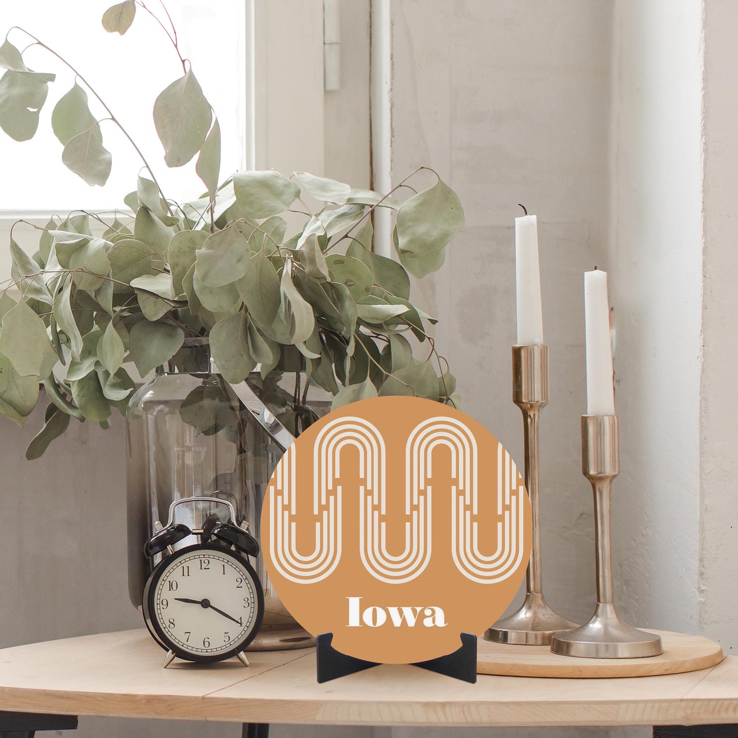 Vintage Groove Yellow Wave Lines Iowa | Wood Sign | Eaches | Min 1